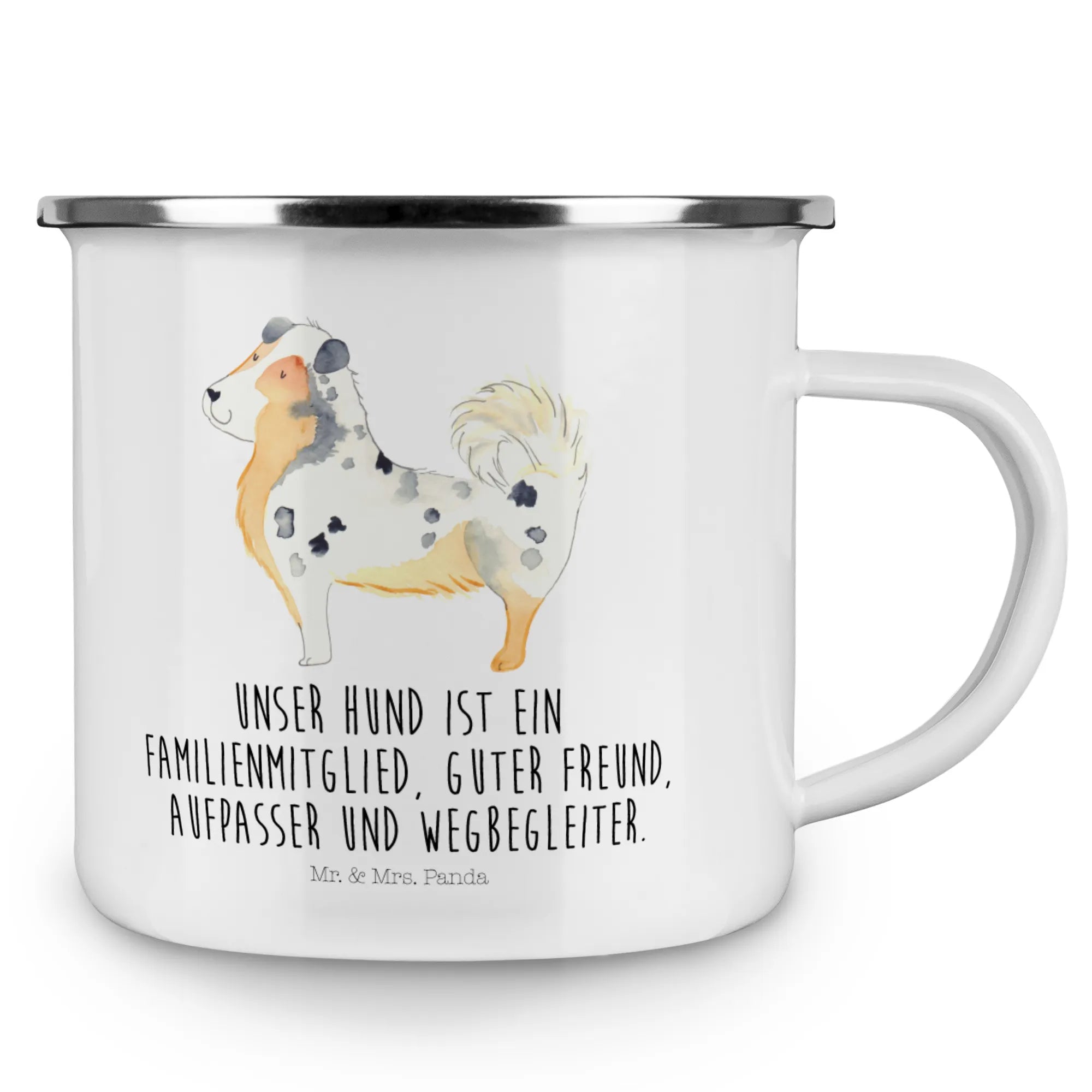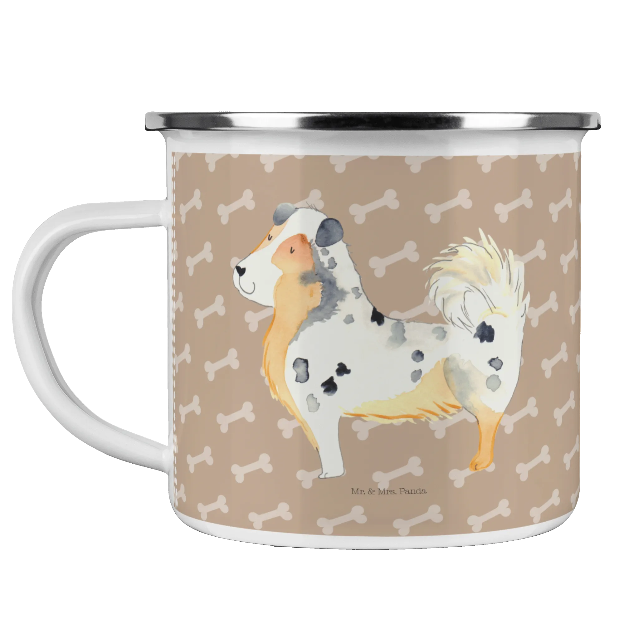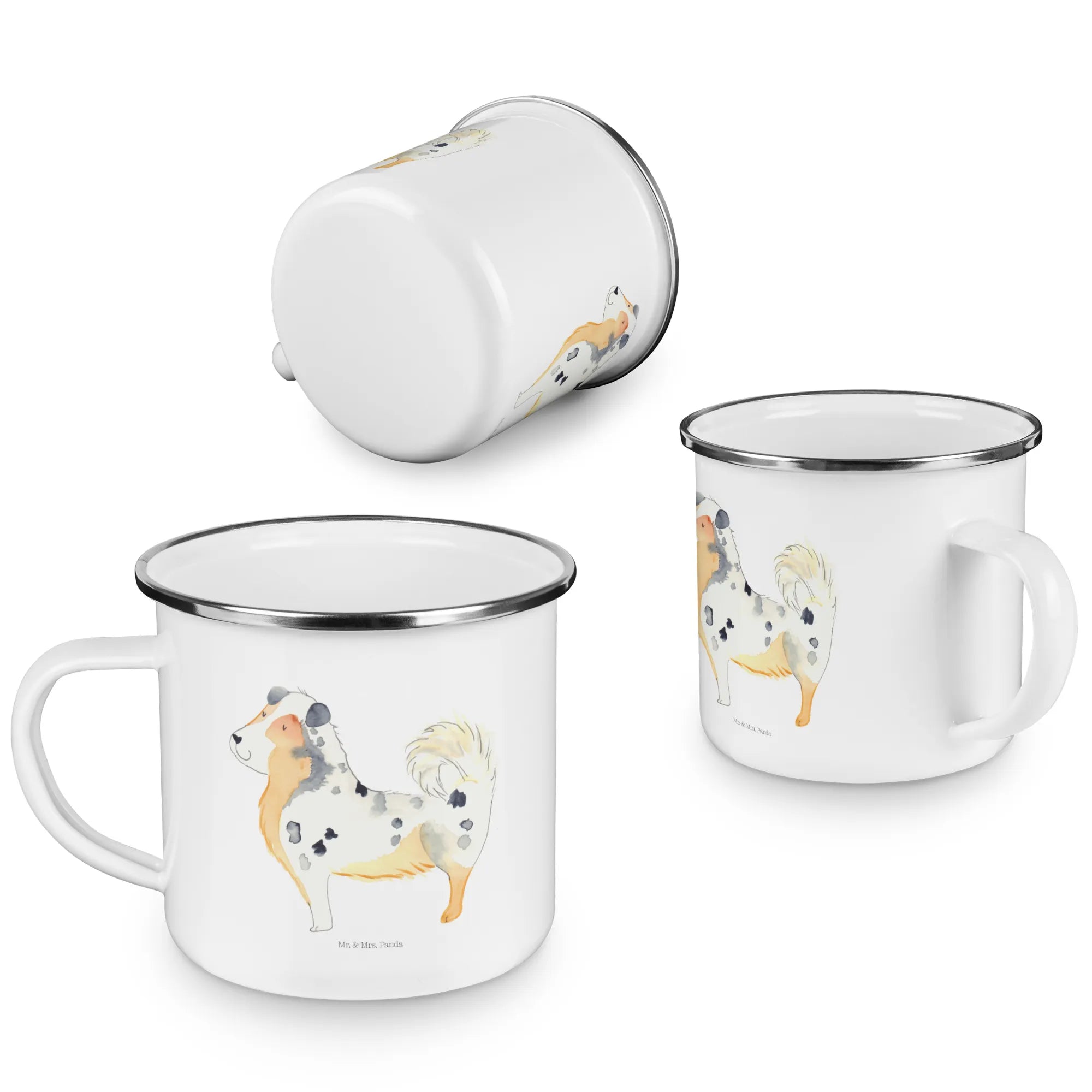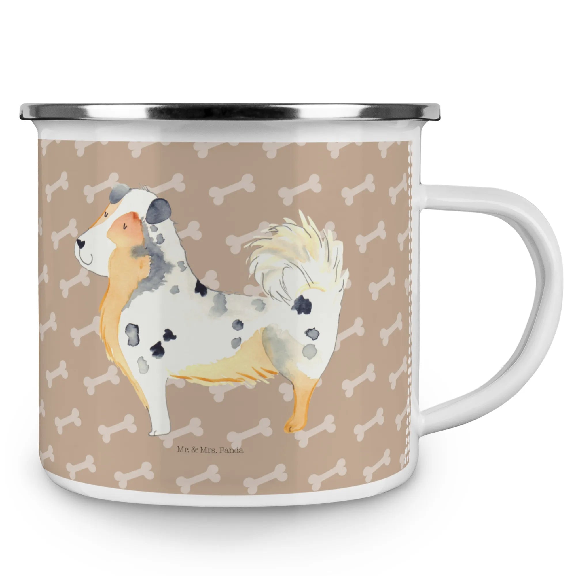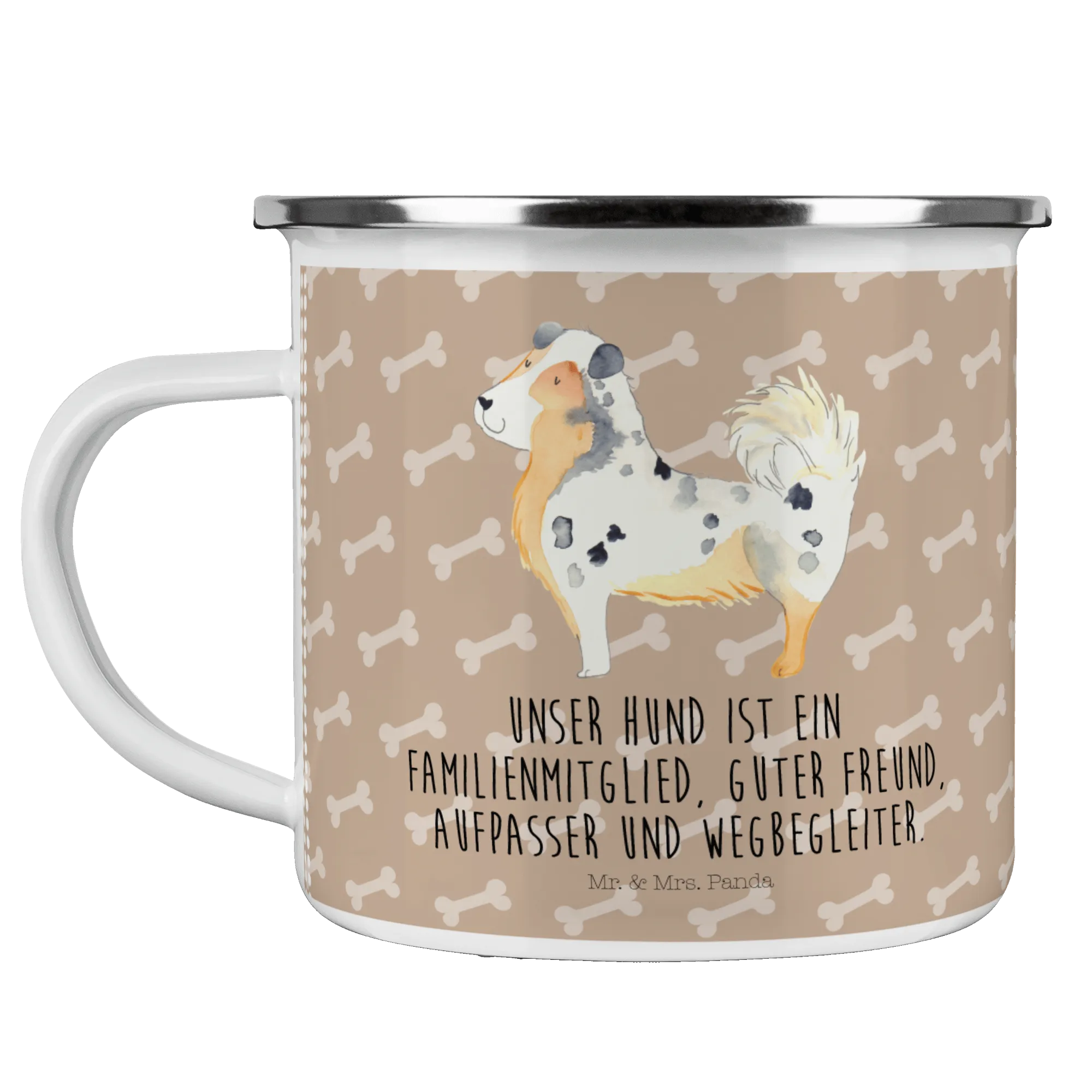 Kempingowy kubek emaliowany Pies Owczarek australijski - z napisem - Hundeglück