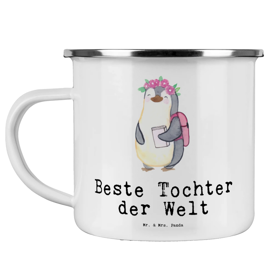 Kempingowy kubek emaliowany pingwin Najlepsza córka na świecie - Biały