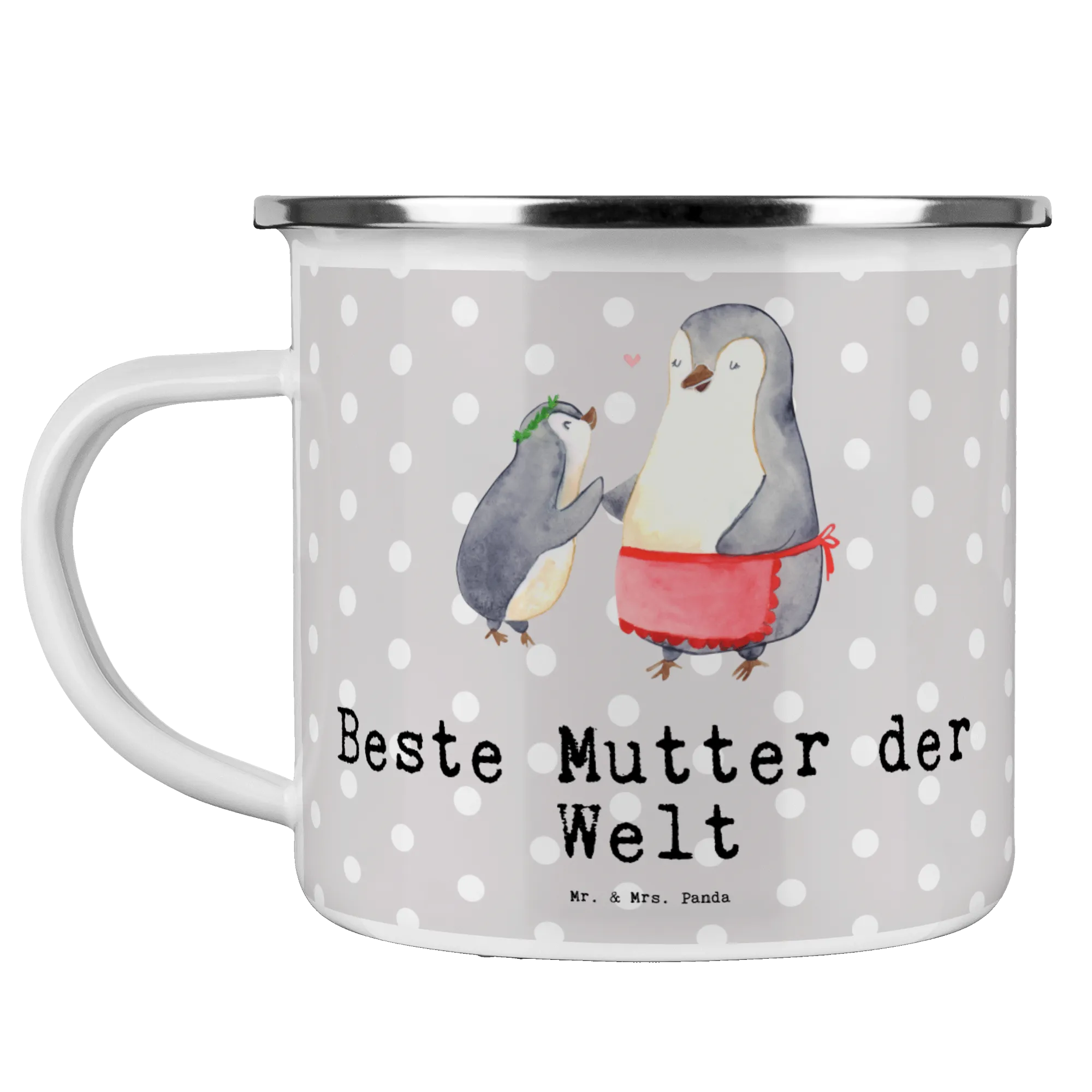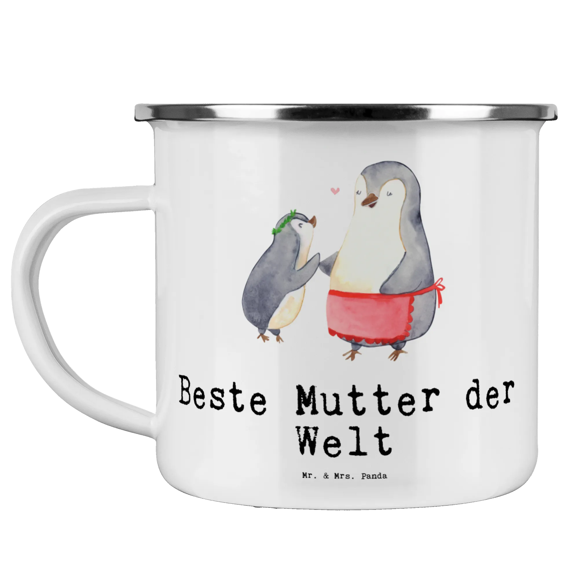 Kempingowy kubek emaliowany pingwin Najlepsza mama na świecie - Biały