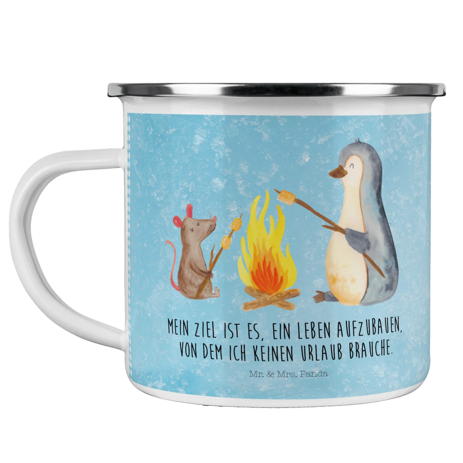 Kempingowy kubek emaliowany pingwin ognisko – Mr. & Mrs. Panda