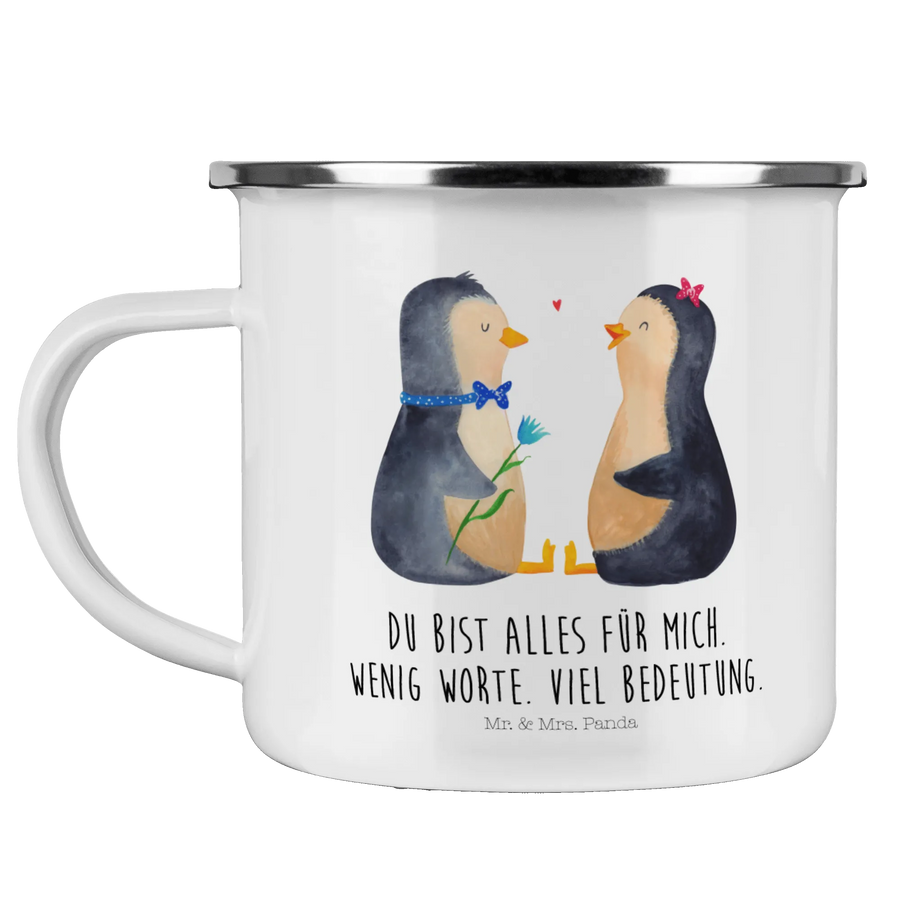 Kempingowy kubek emaliowany Pingwin para - z napisem - Biały