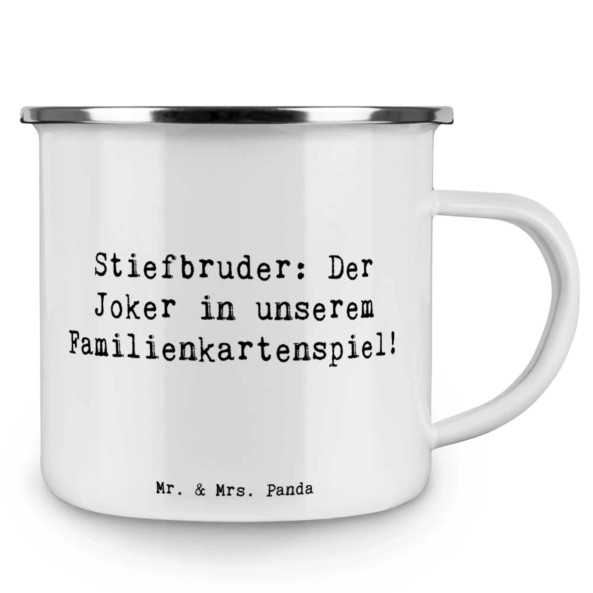 Kempingowy kubek emaliowany Przysłowie Stiefbruder: Der Joker in unserem Familienkartenspiel!