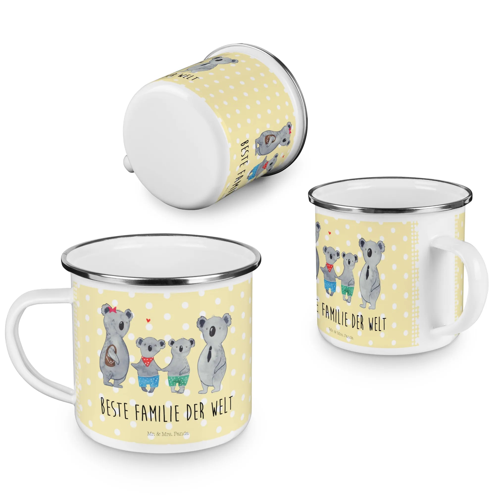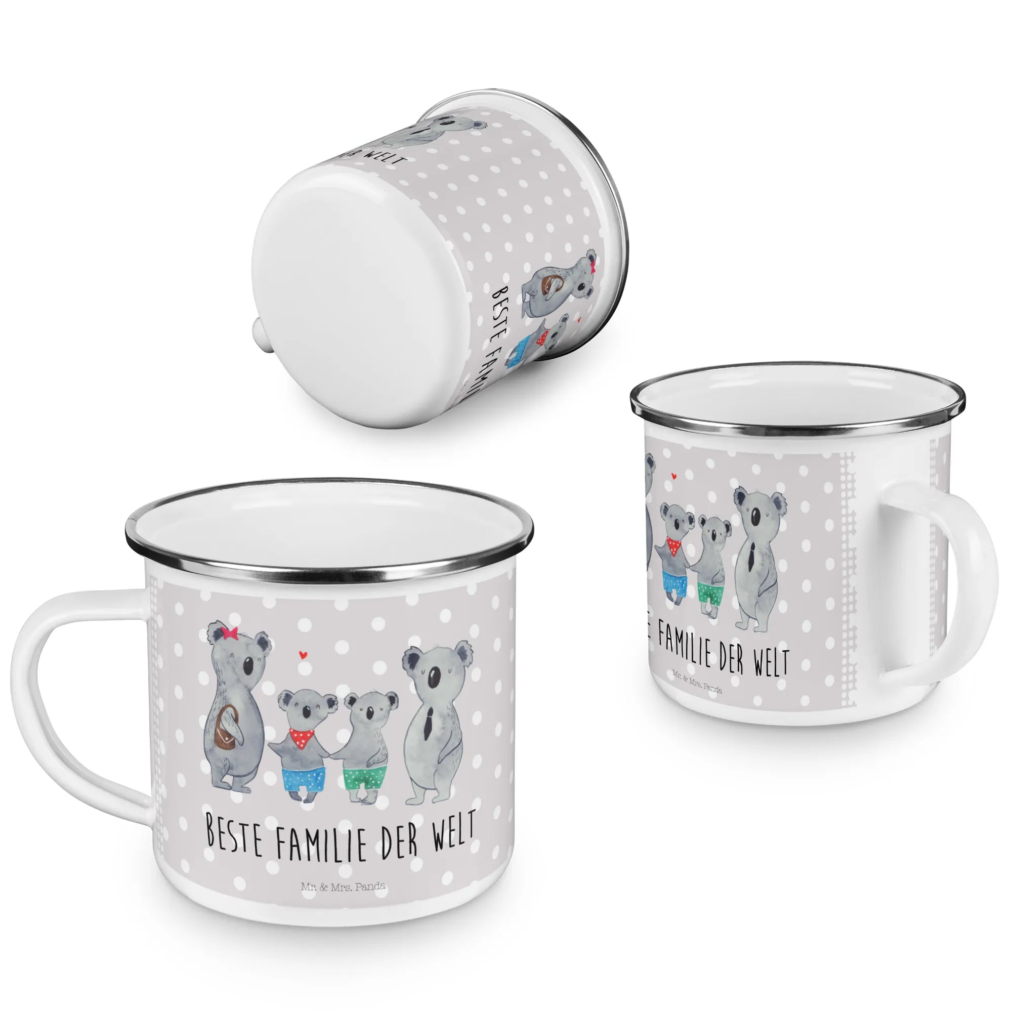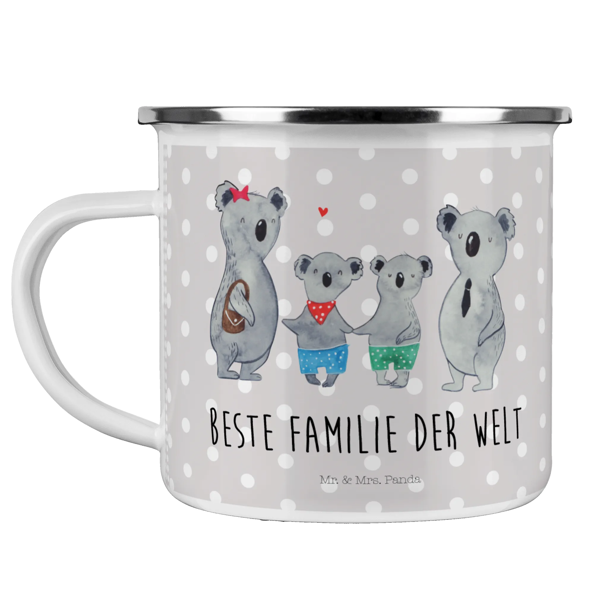Kempingowy kubek emaliowany Rodzina koali dwa - z napisem - biały