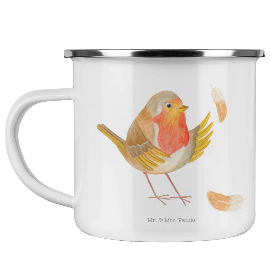 Kempingowy kubek emaliowany rudzik Pióra - bez napisu - biały