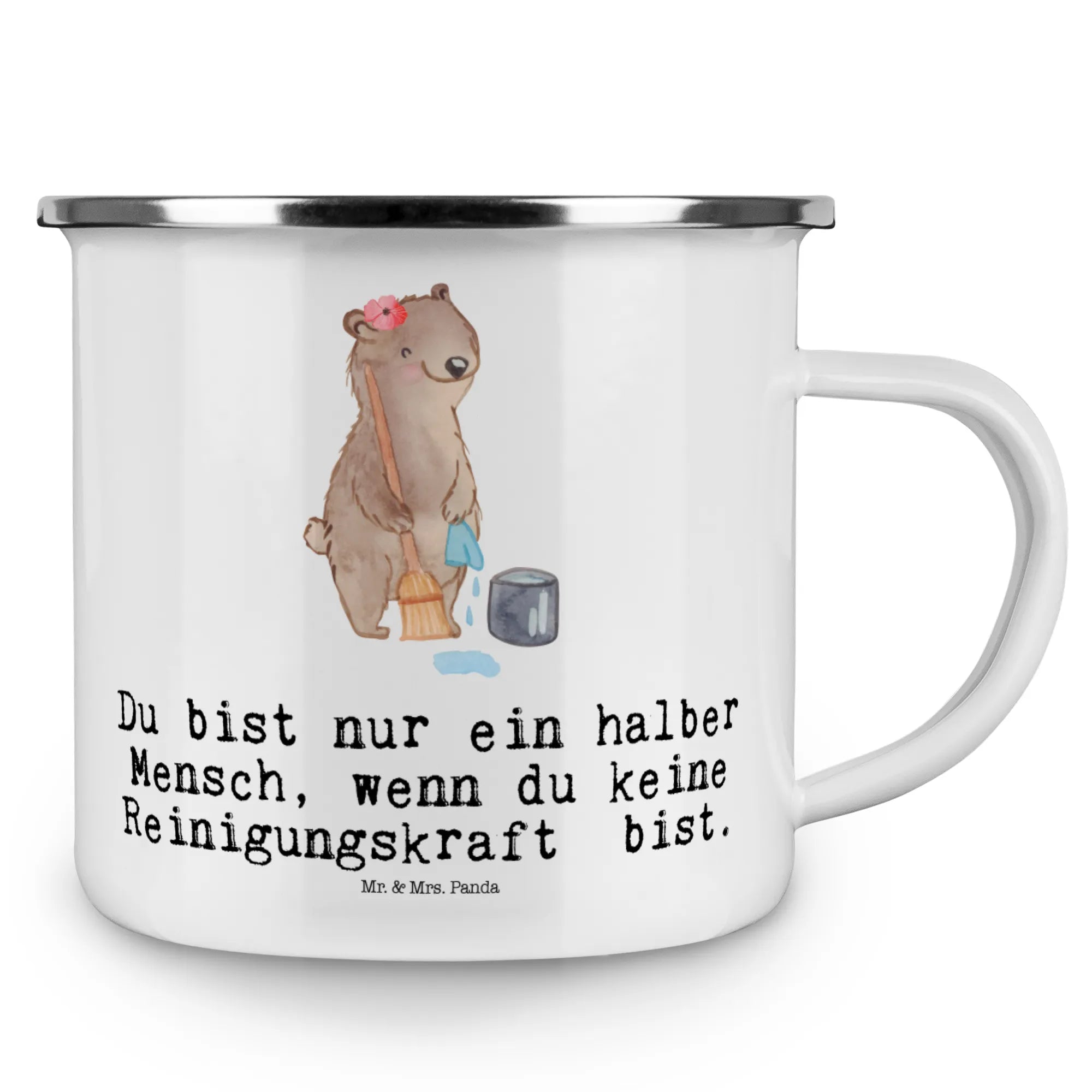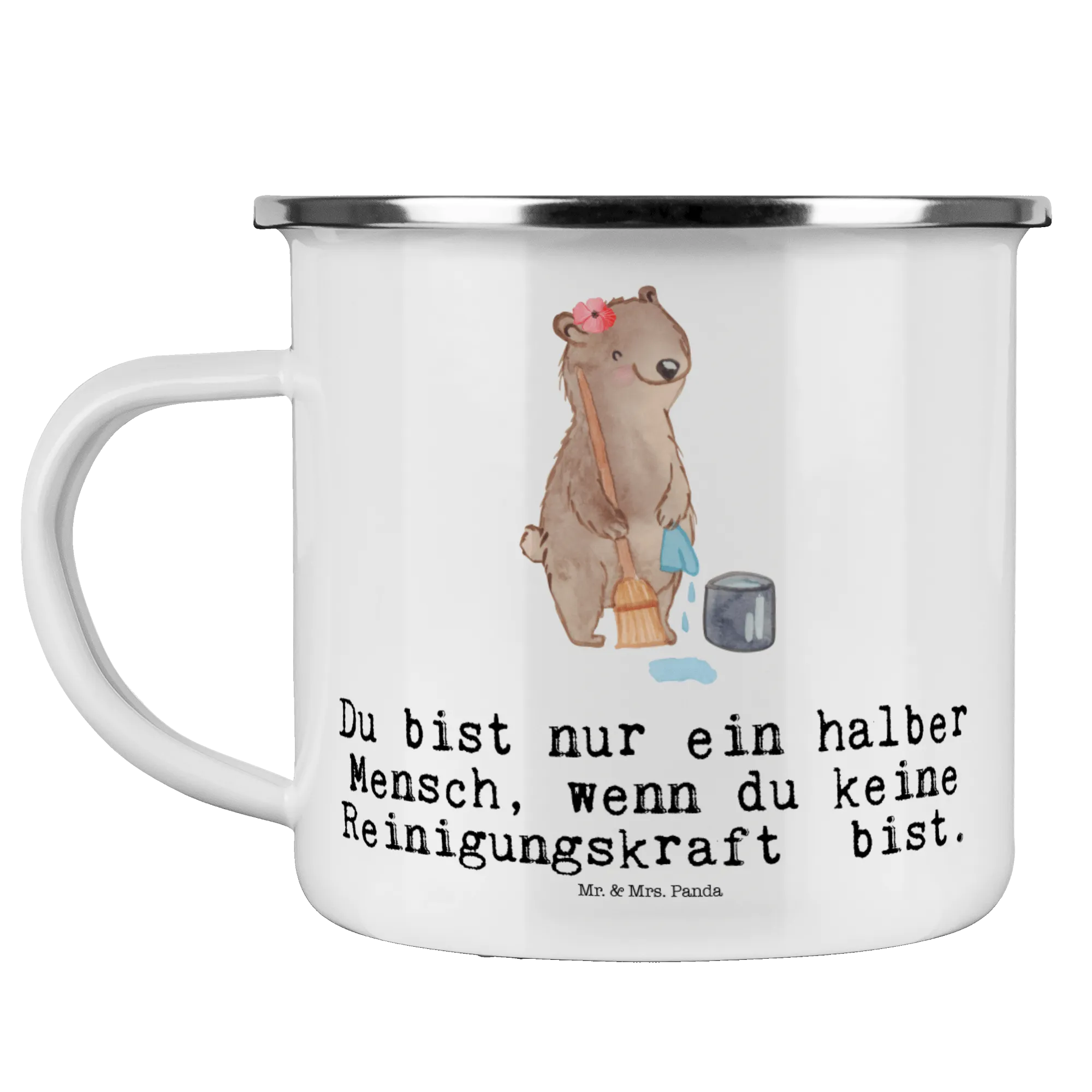 Kempingowy kubek emaliowany Sprzątaczka serce
