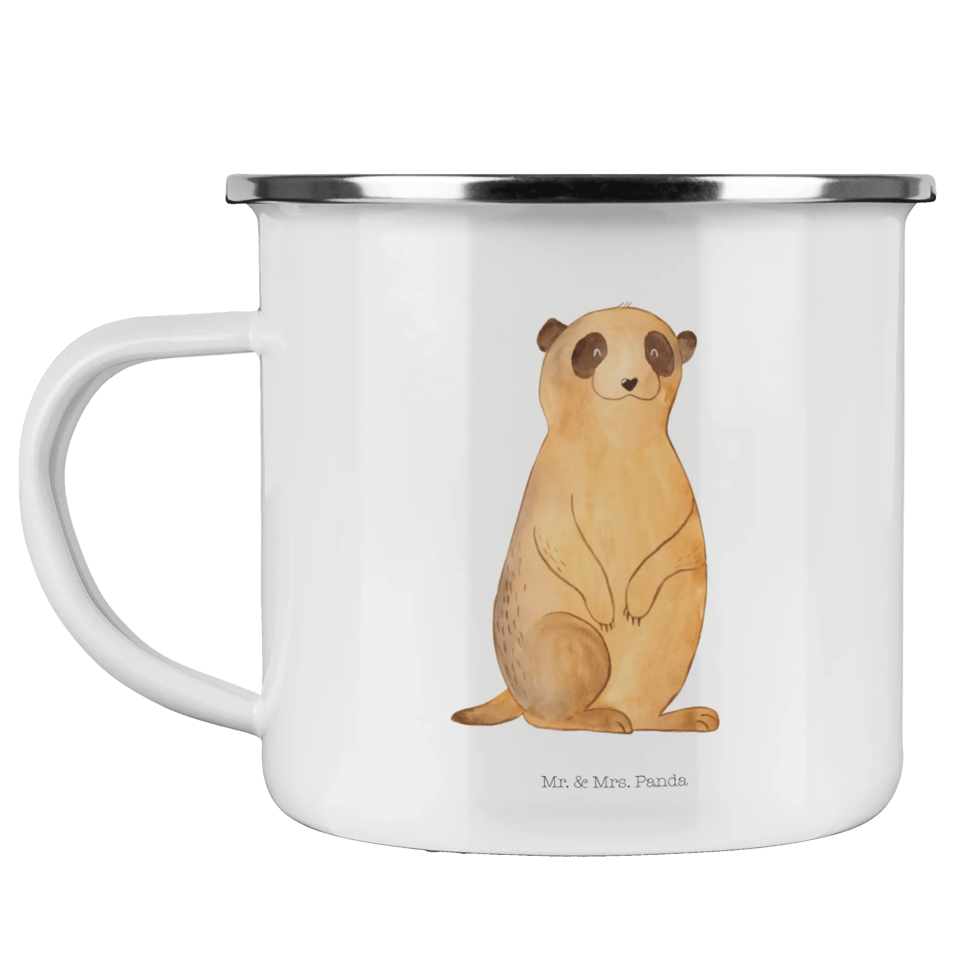 Kempingowy kubek emaliowany Surikatka - z napisem - biały