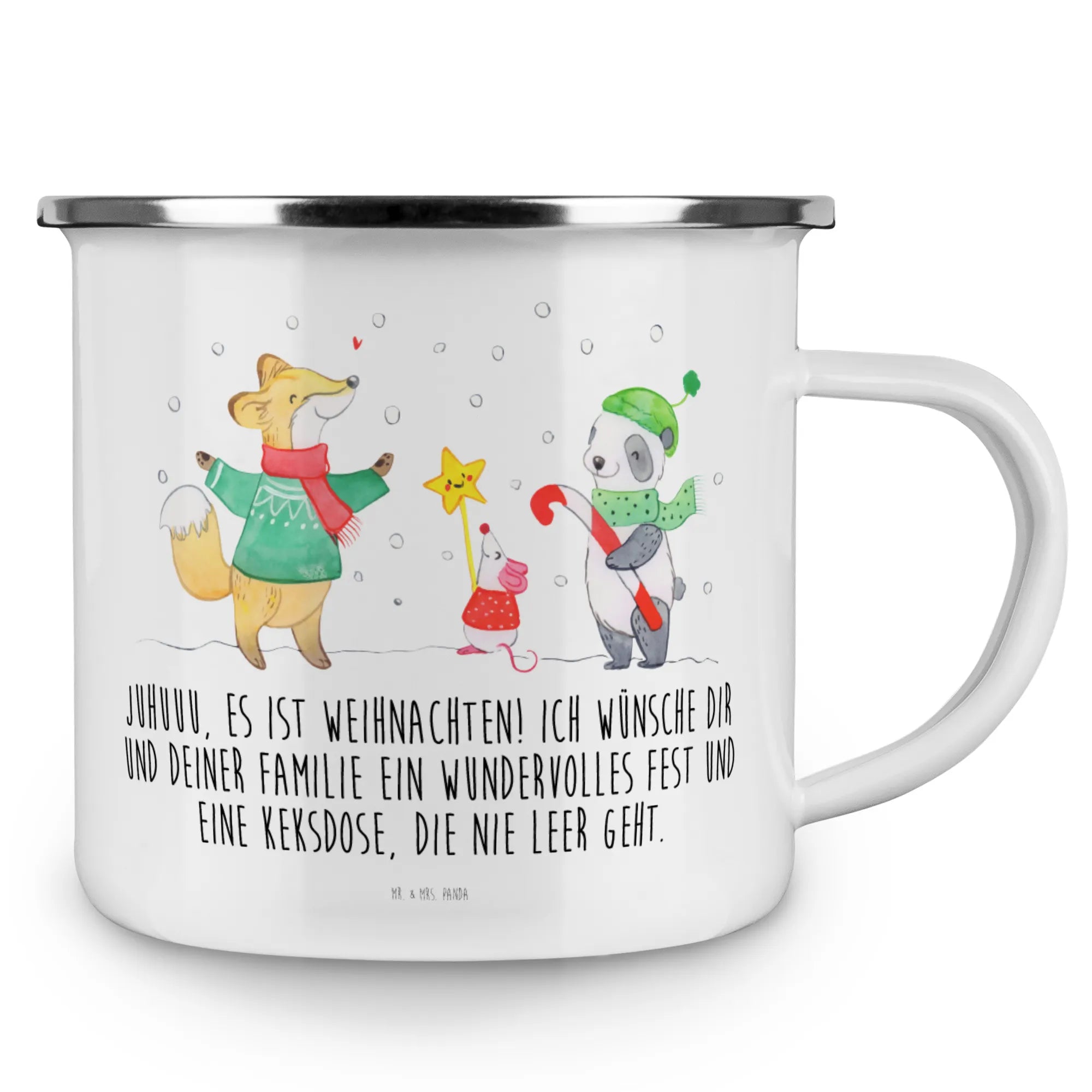 Kempingowy kubek emaliowany Zima radość świąteczna – Mr. & Mrs. Panda
