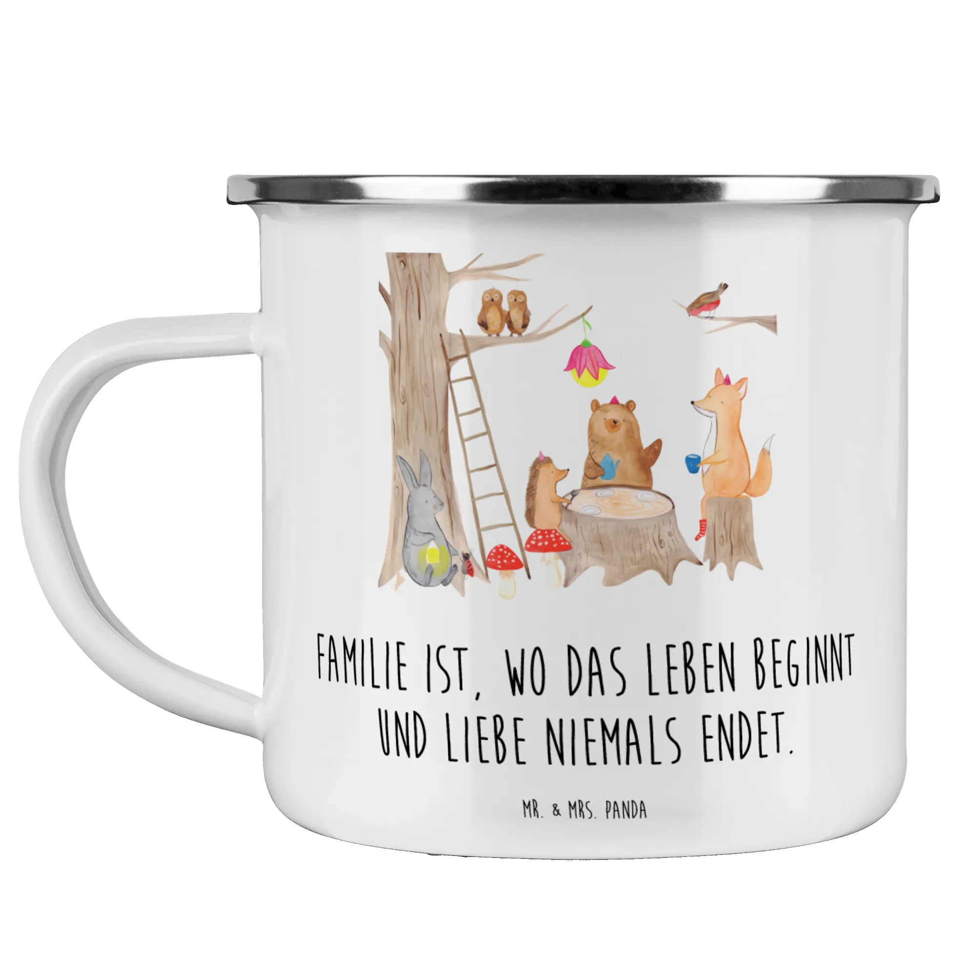 Kempingowy kubek emaliowany zwierzęta leśne piknik - z napisem - biały