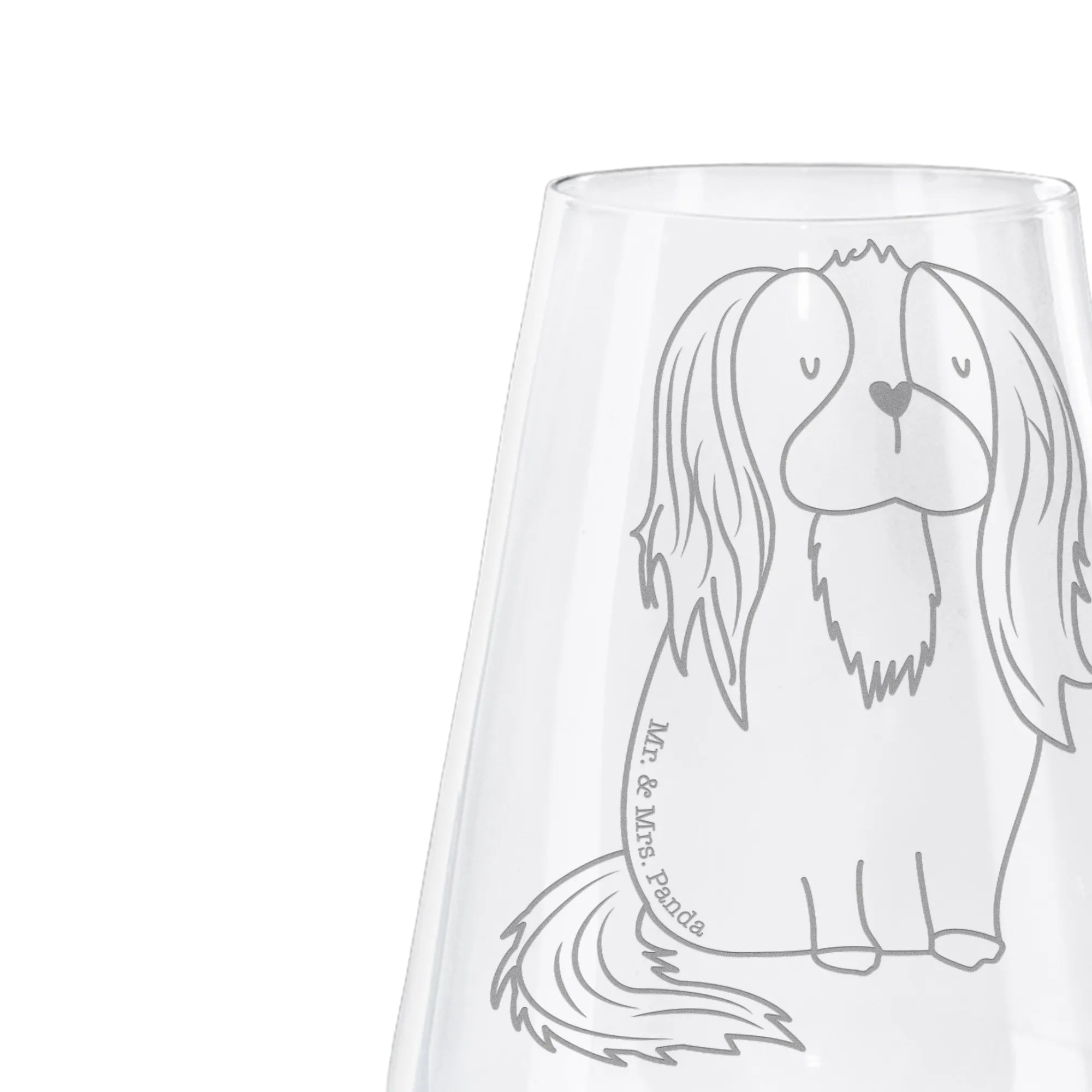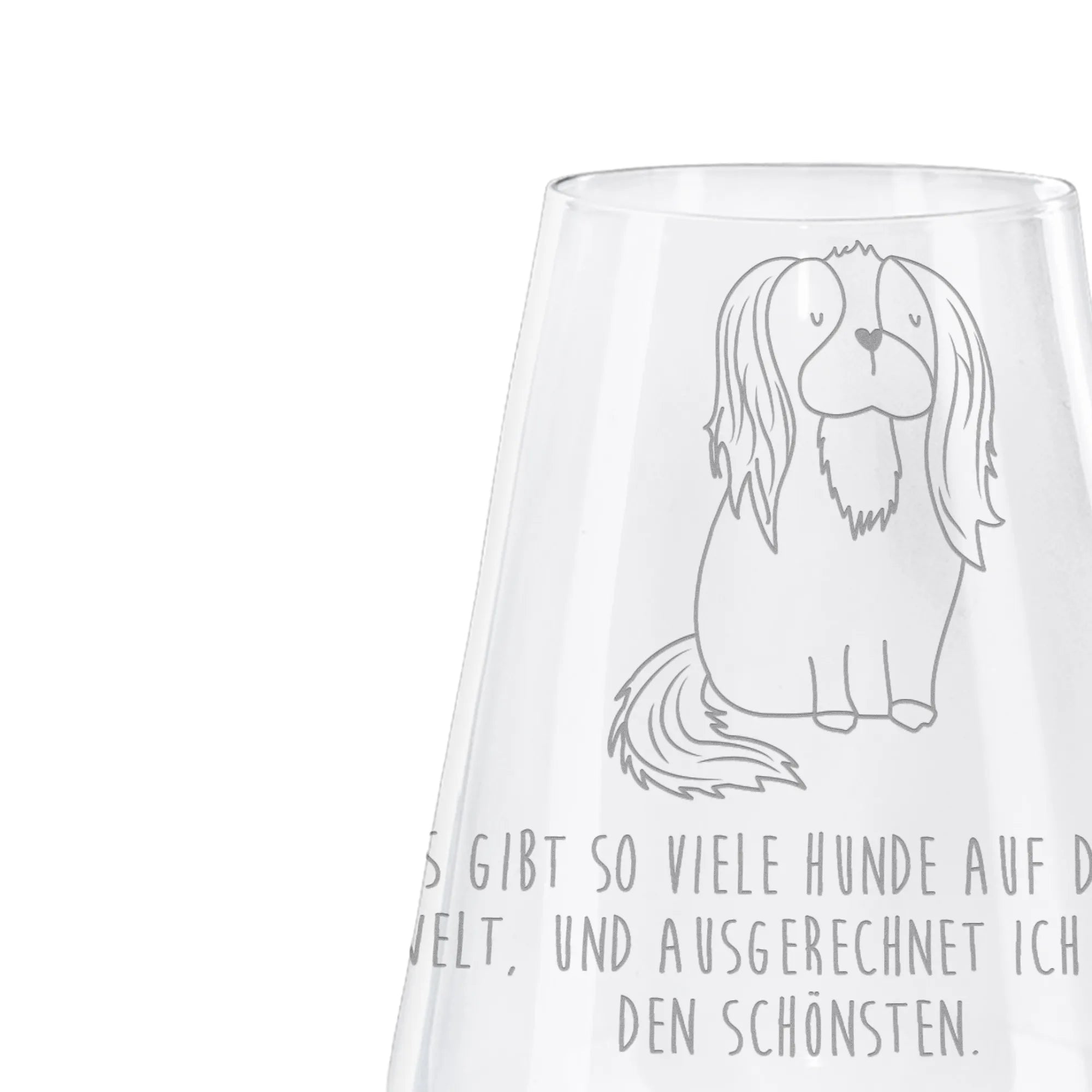 Entdecke das wunderschöne Weißweinglas mit dem bezaubernden Motiv des Cavalier King Charles Spaniels aus der Hunde Kollektion von Mr. & Mrs. Panda! Dieses exquisite Glas ist nicht nur ein Augenschmaus, sondern auch das perfekte Geschenk für alle Weinliebhaber und Hundebesitzer. Es gibt so viele Hunde auf dieser Welt, und ausgerechnet ich habe den Schönsten – dieser Spruch ziert das Glas und sorgt für ein Lächeln bei jedem Schluck deines Weißweins.