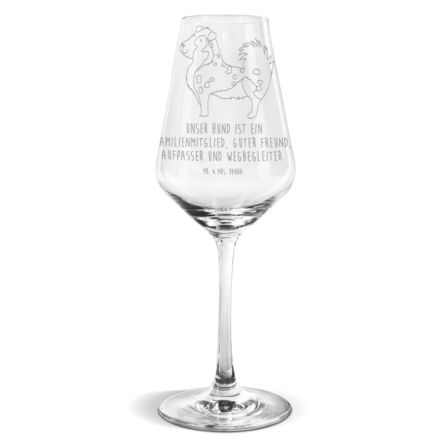Das wunderschöne Weißweinglas mit dem einzigartigen Motiv eines Australian Shepherd von Mr. & Mrs. Panda ist das perfekte Geschenk für alle Tierliebhaber und besonders für Hundebesitzer. Diese edlen Weingläser sind nicht nur spülmaschinenfest, sondern auch mit einer hochwertigen Lasergravur versehen, die das Herz eines jeden Hundeliebhabers höher schlagen lässt. Das Motiv zeigt einen süßen Australian Shepherd, der von einer zarten Blumenranke umgeben ist - eine liebevolle Hommage an Deinen treuen Begleiter.