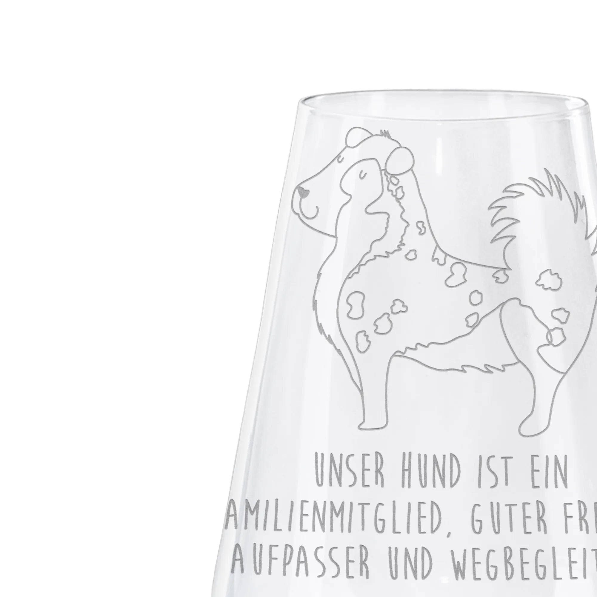 Mit dem Spruch „Unser Hund ist ein Familienmitglied, guter Freund, Aufpasser und Wegbegleiter.“ bringt dieses Glas die besondere Verbindung zwischen Mensch und Hund perfekt zum Ausdruck. Egal, ob Du einem guten Freund, einem Familienmitglied oder Dir selbst eine Freude machen möchtest - dieses Weinaccessoire ist immer eine gute Wahl. Du kannst es bei einem gemütlichen Abend zu Hause, einem Picknick im Park oder bei einer Feier mit Freunden verwenden.