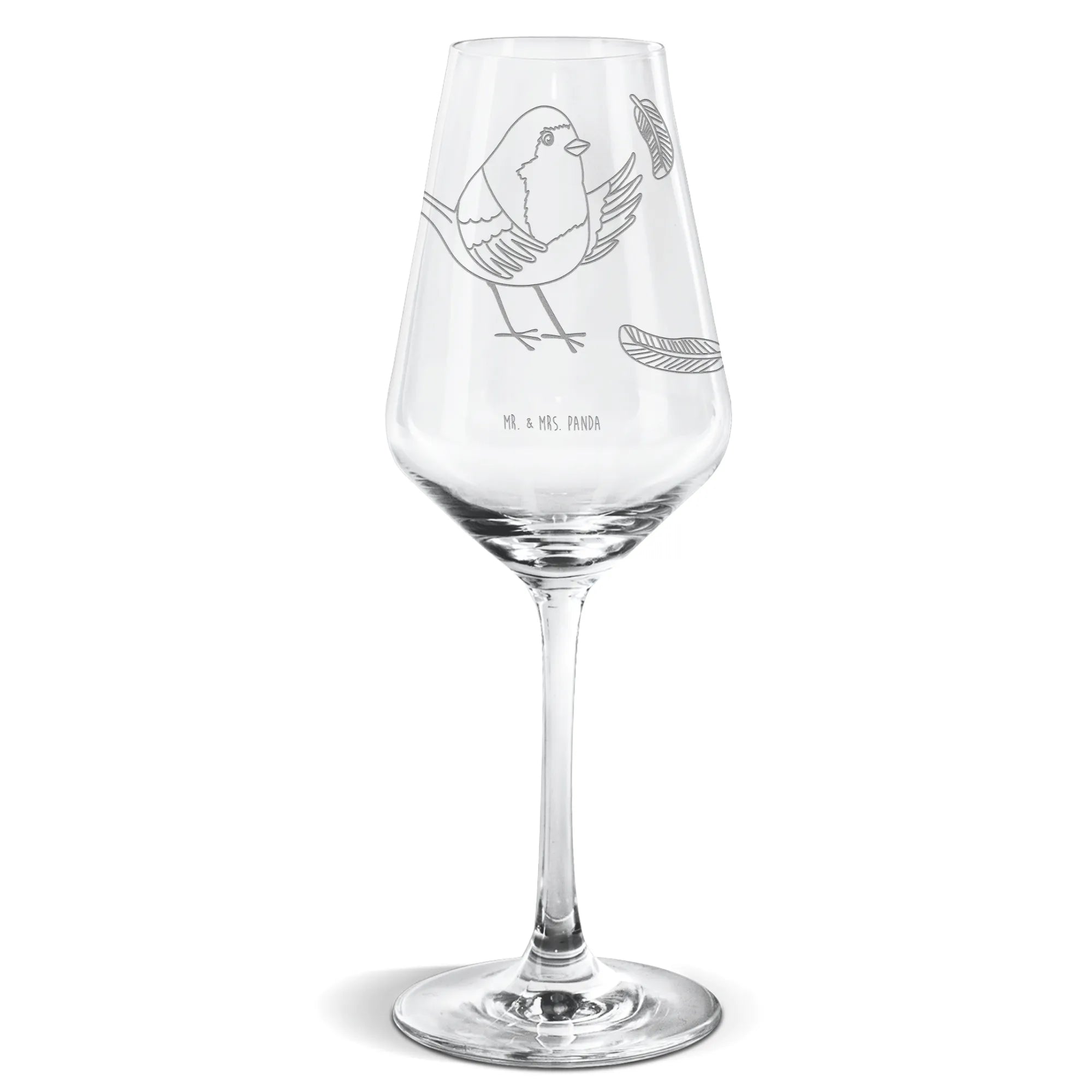 Entdecke das wunderschöne Weißweinglas mit dem niedlichen Rotkehlchen-Motiv aus der Small World Kollektion von Mr. & Mrs. Panda. Dieses hochwertige Glas ist nicht nur ein tolles Accessoire, sondern auch die perfekte Geschenkidee für jeden Weinliebhaber. Mit einer Füllmenge von 500 ml eignet sich das Glas ideal für deinen Lieblingsweißwein.
