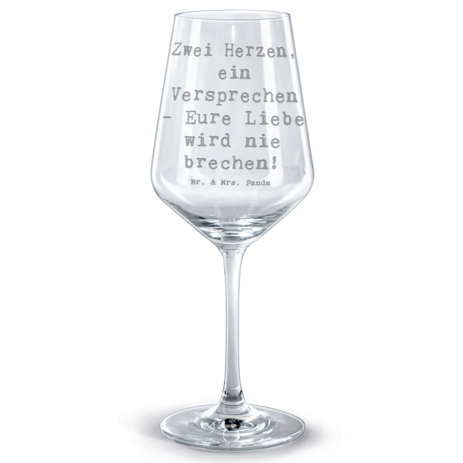 Ein Wunderschönes Rotweinglas mit dem Motto "Zwei Herzen, ein Versprechen - Eure Liebe wird nie brechen!" aus der exklusiven Hochzeitskollektion von Mr. & Mrs. Panda ist das perfekte Geschenk für Weinliebhaber und frisch verheiratete Paare! Wenn du auf der Suche nach einem einzigartigen Hochzeitsgeschenk bist, das sowohl stilvoll als auch praktisch ist, dann ist dieses Rotweinglas genau das Richtige für dich.