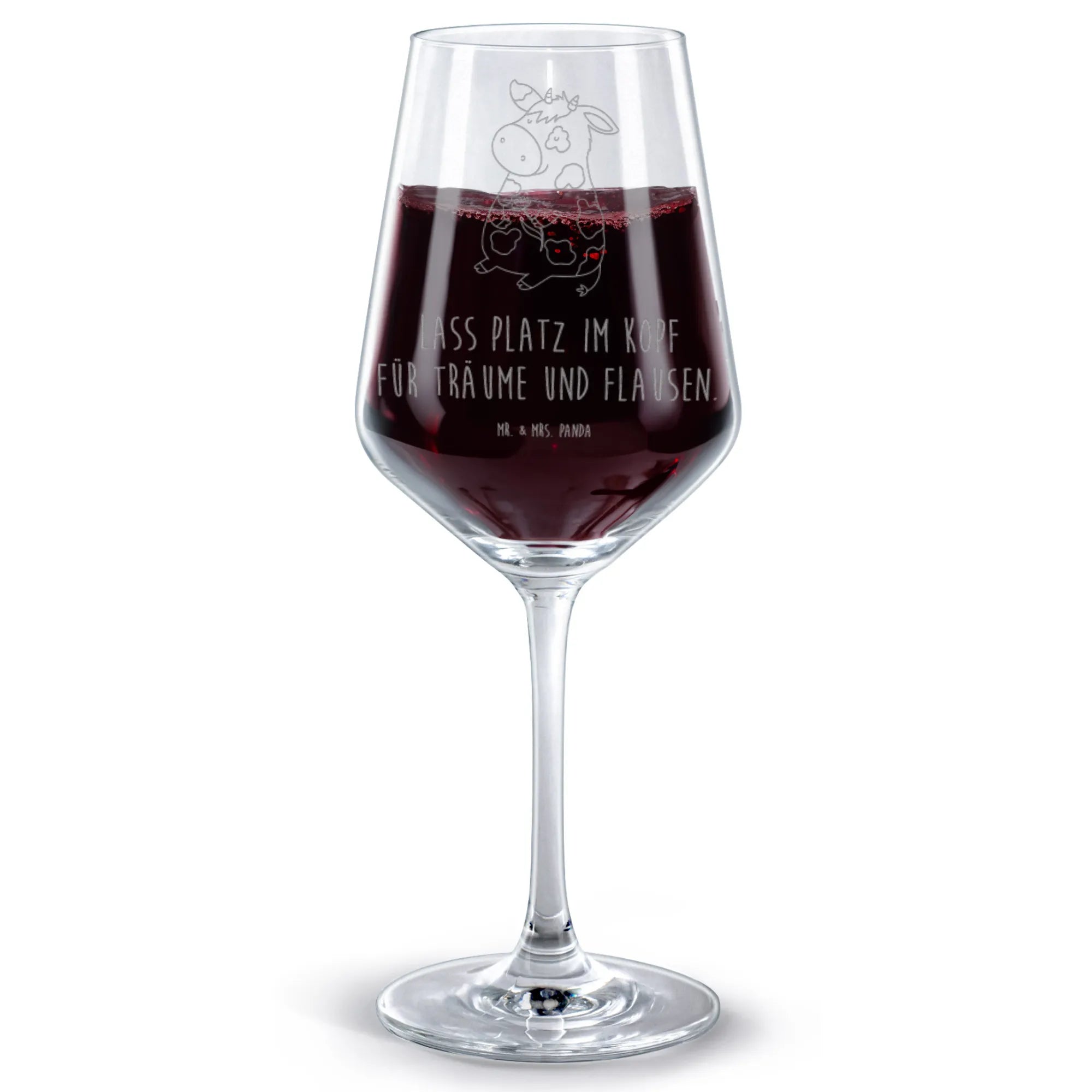 Mr. & Mrs. Panda Rotweinglas „Kuh“ – das perfekte Zusammenspiel aus Bauernhof-Charme und elegantem Weingenuss. Die niedliche Kuh mit Blume und der Spruch „Lass Platz im Kopf für Träume und Flausen.“ machen dieses Weinglas für Rotwein zu einem liebevollen Begleiter für entspannte Abende und fröhliche Festtafeln. 🐄🌸