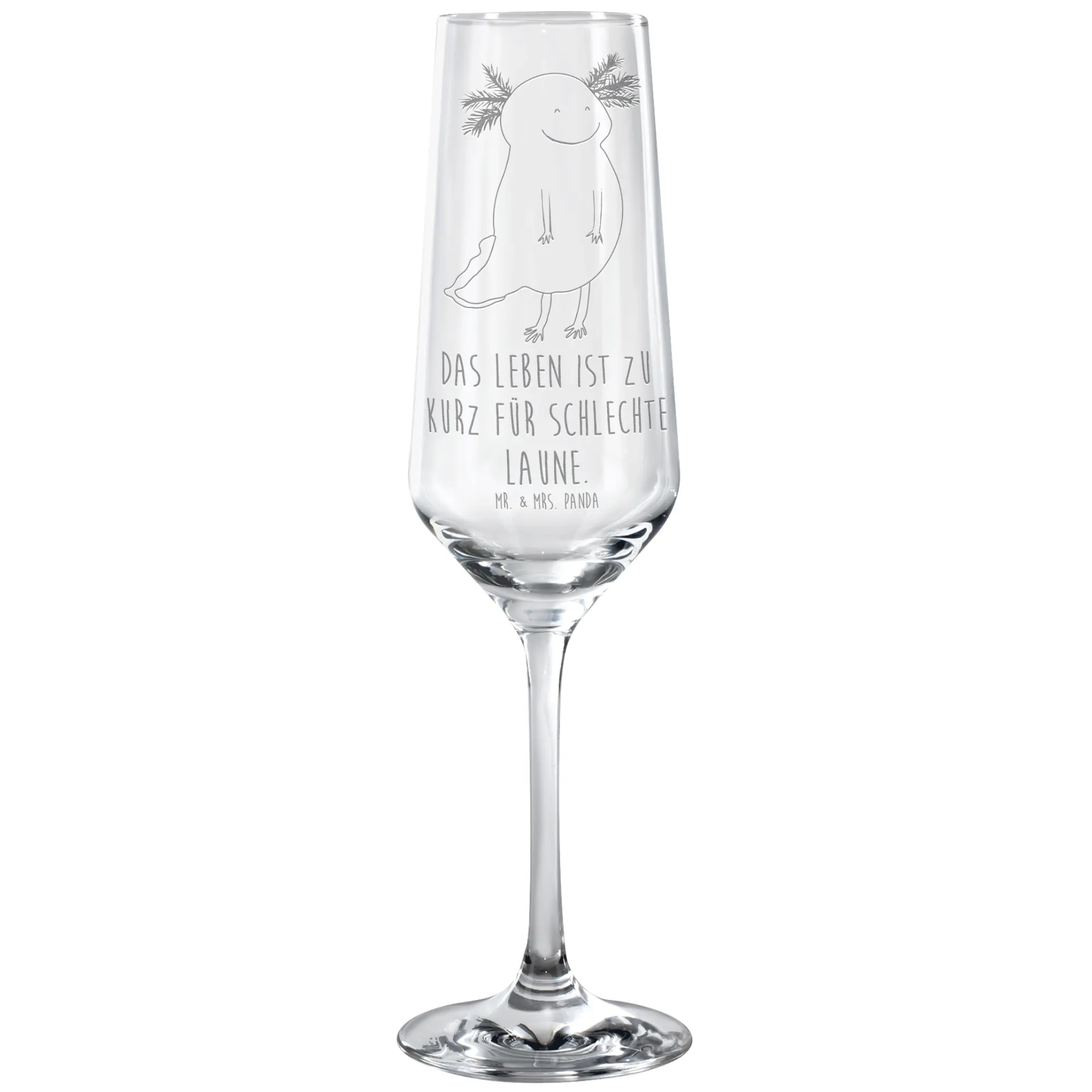 kieliszek do sektu Aksolotl Szczęśliwy - z napisem