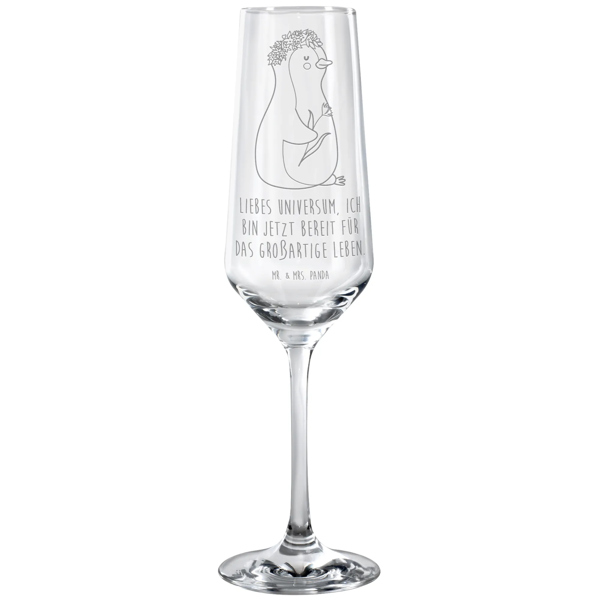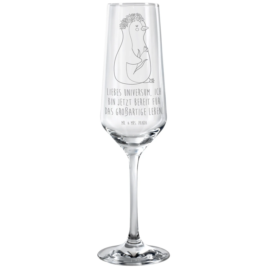kieliszek do sektu pingwin kwiaty - mit Spruch