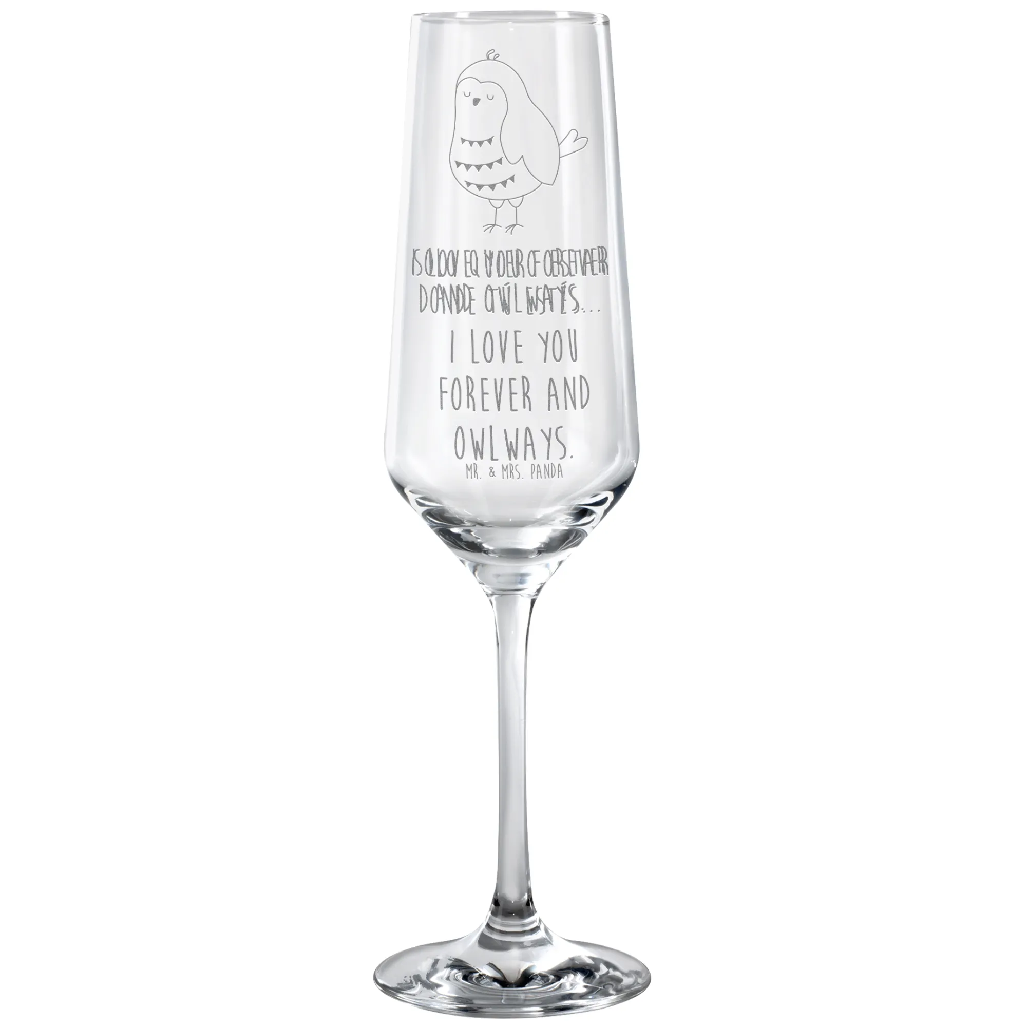 kieliszek do sektu sowa zadowolona - mit Spruch