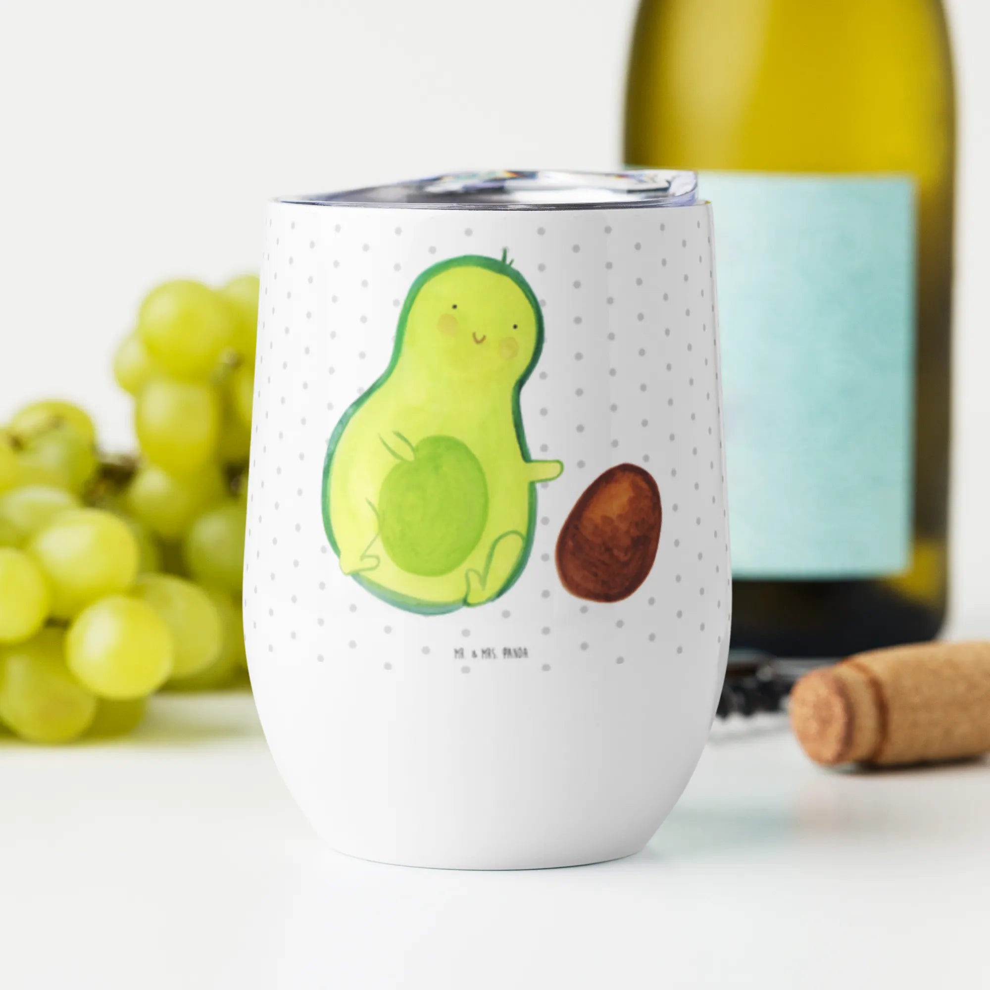 Kieliszek do wina Awokado pestka toczy się - mit Spruch