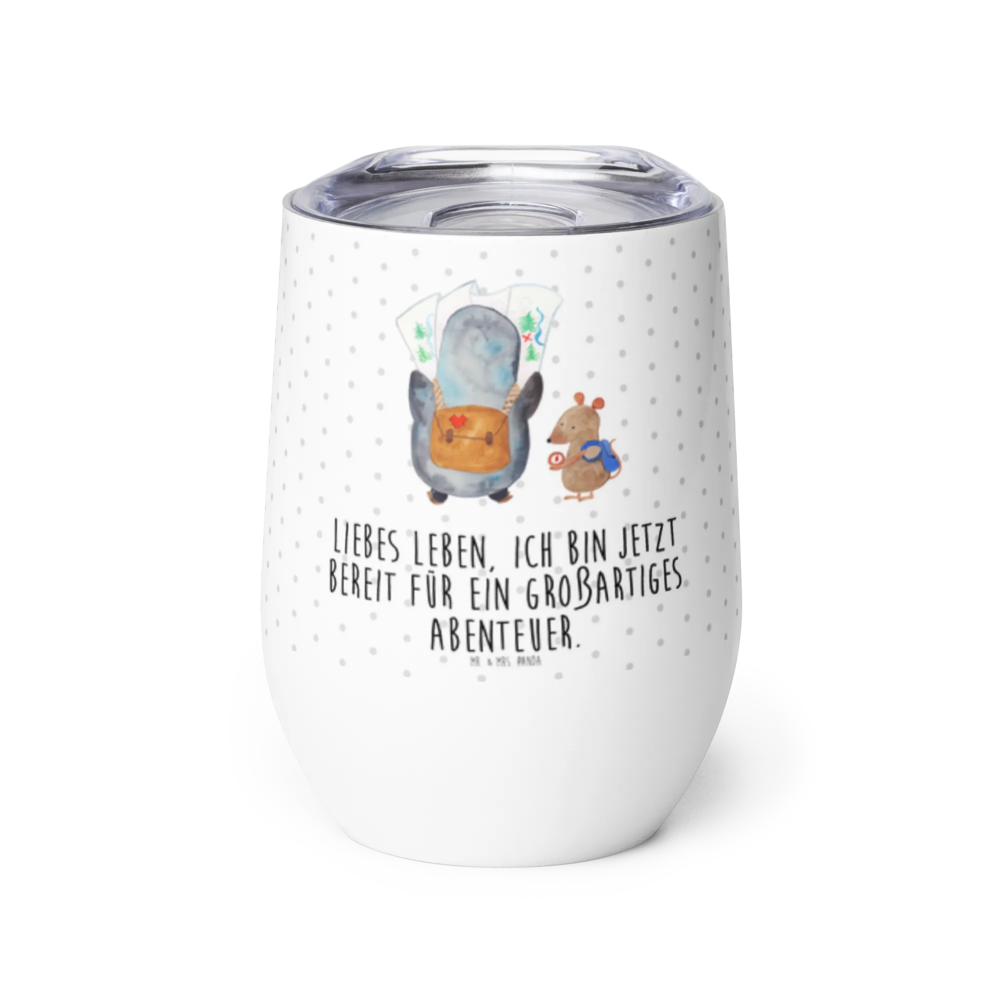 Kieliszek do wina Pingwin i Mysz Wędrowcy - z napisem