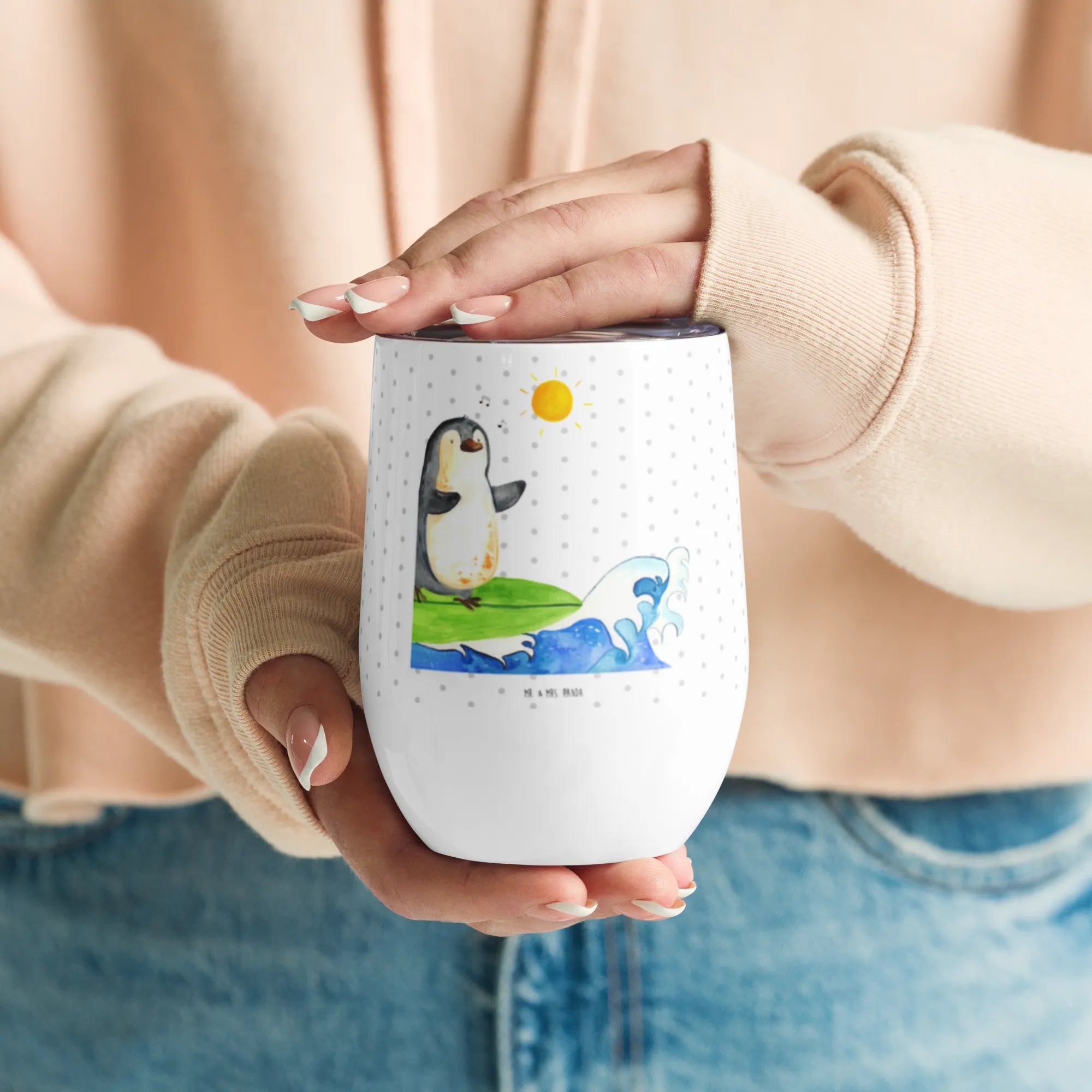 Kieliszek do wina Pingwin surfista - z napisem