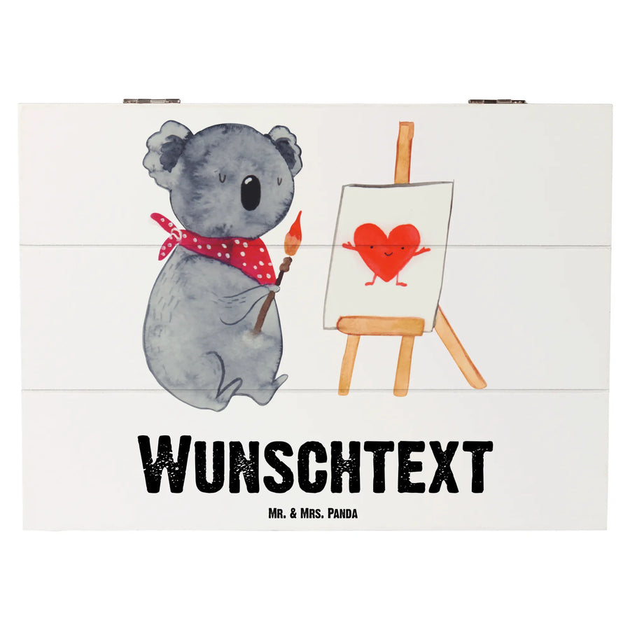 Personalizowane drewniane pudełko koala artysta - 25 x 18 cm - Biały