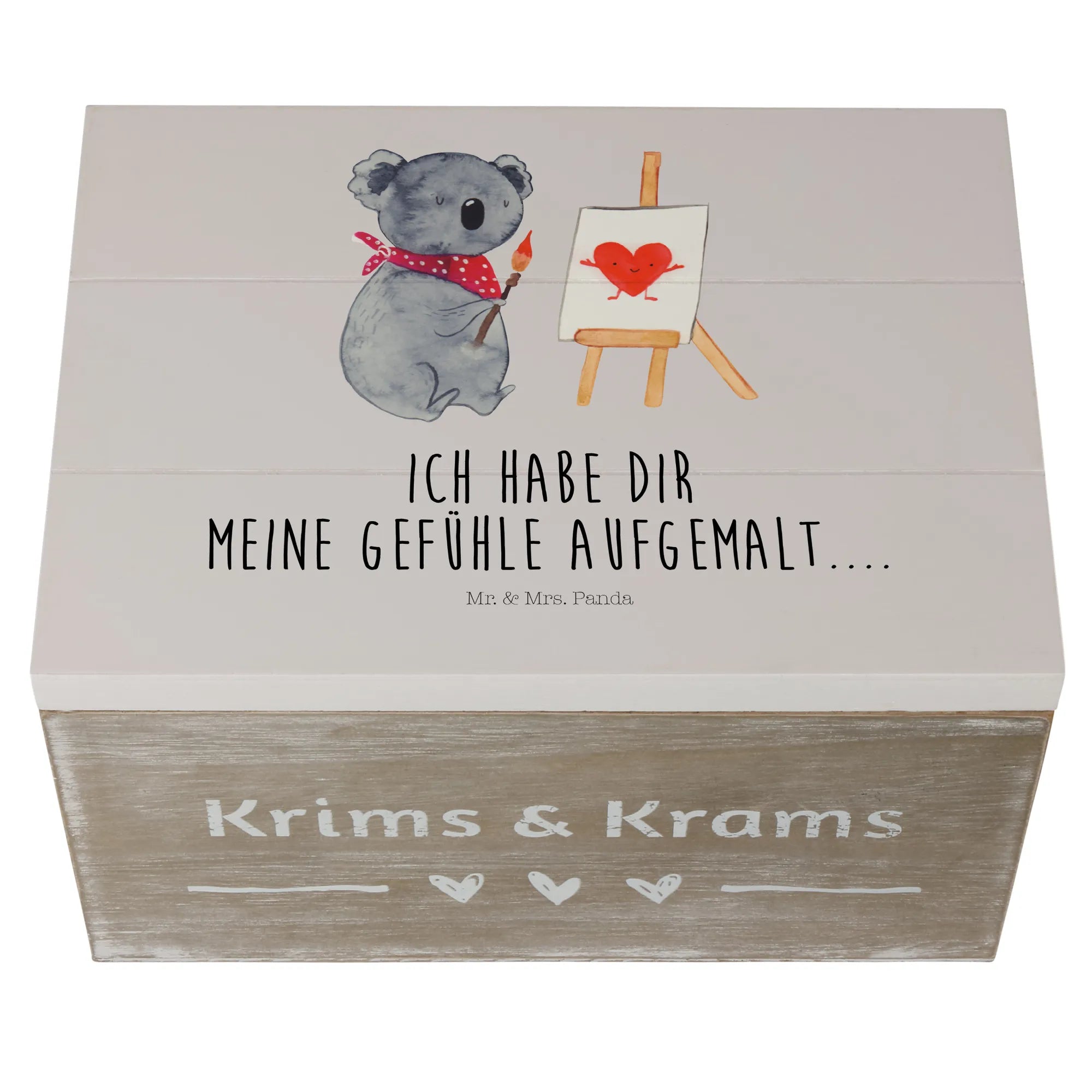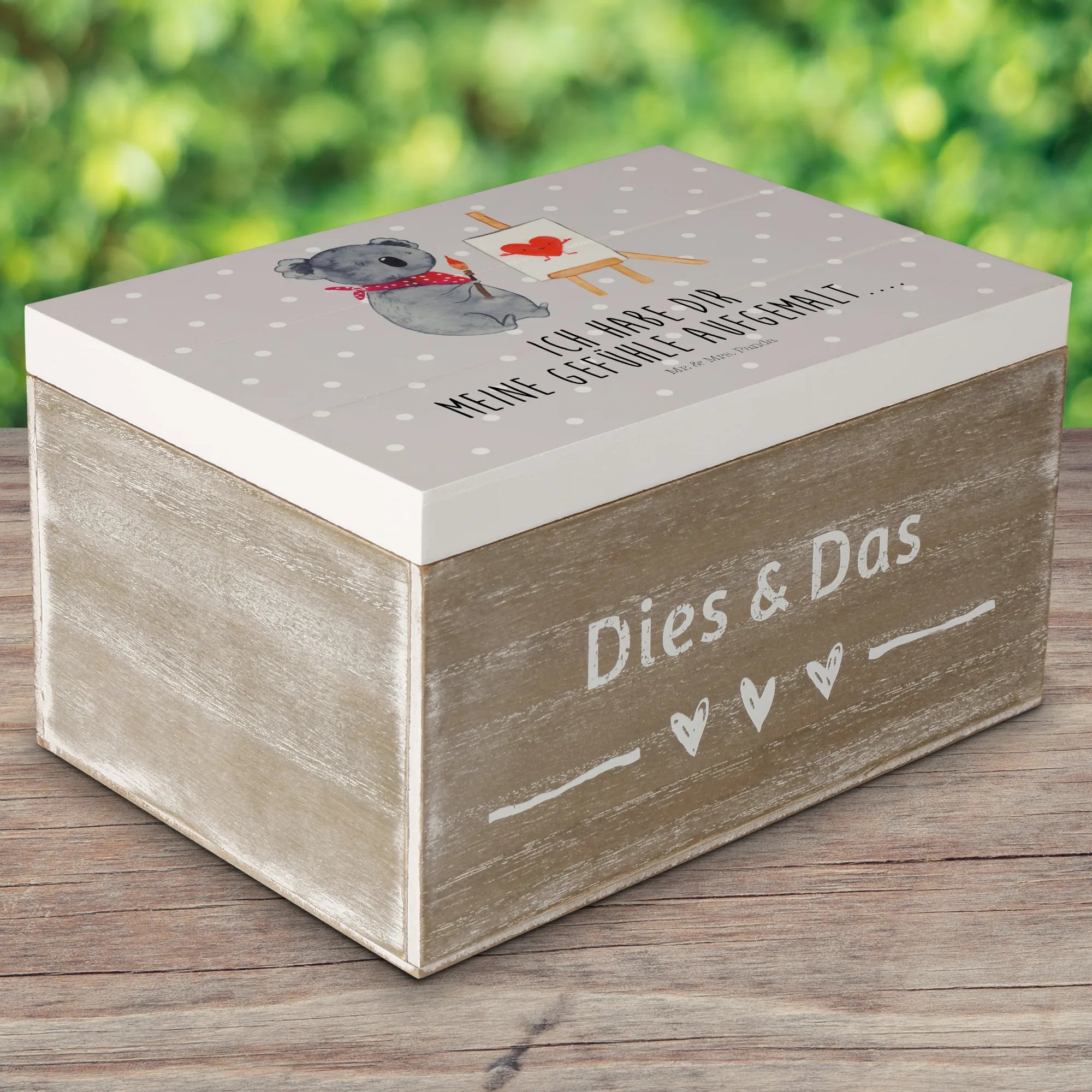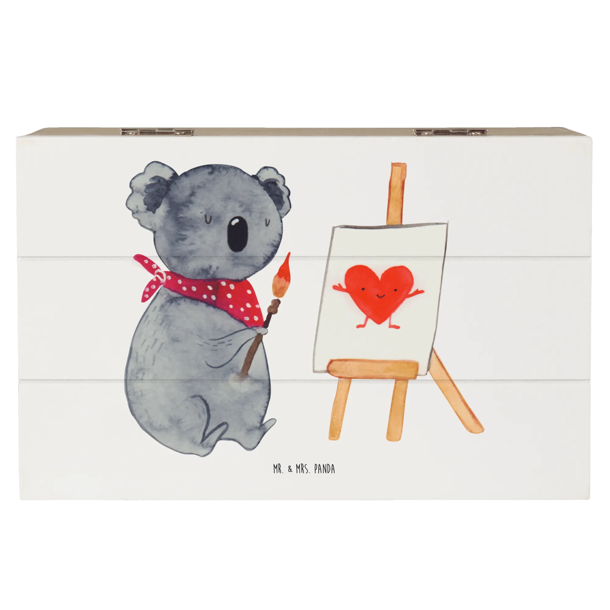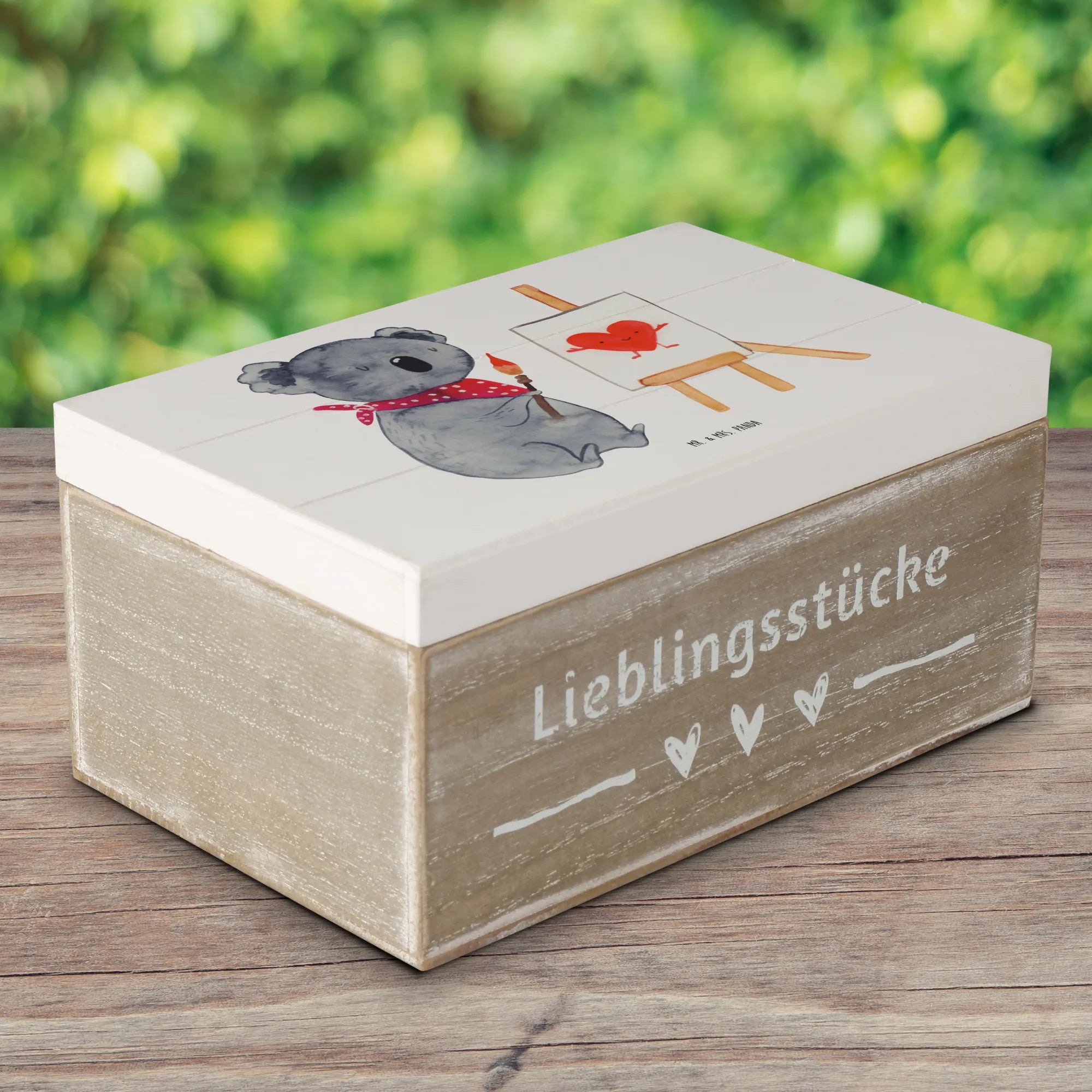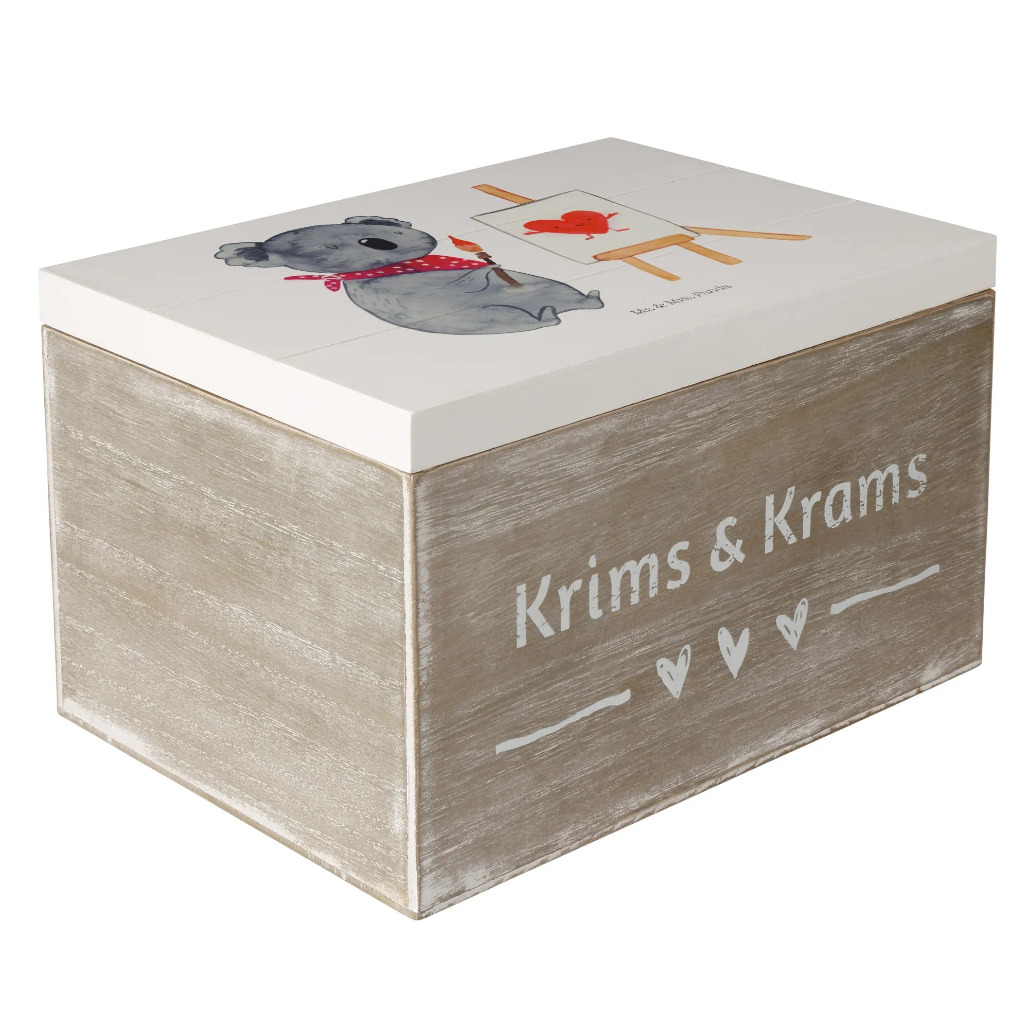 Skrzynia drewniana koala artysta - 22 x 15 cm - z napisem - biały