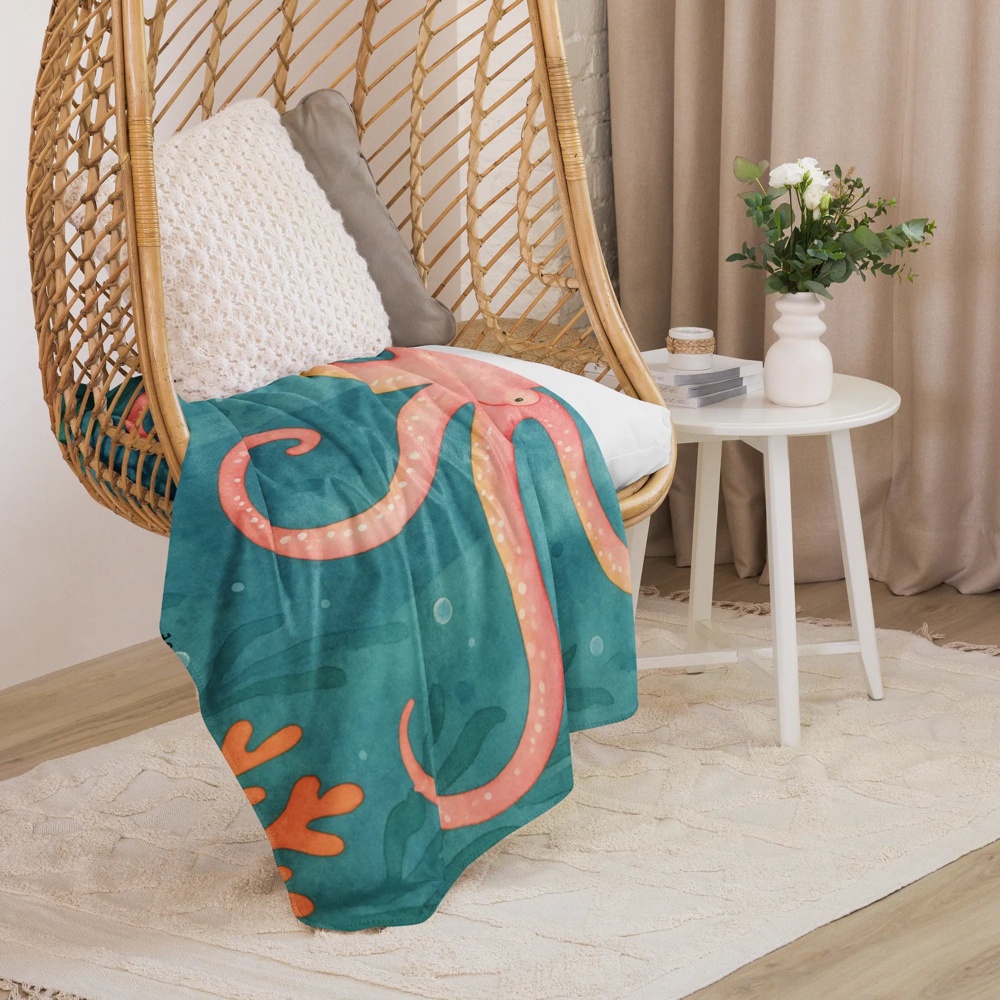 Koc Sherpa Ośmiornica Design - 100 x 150 cm - z napisem