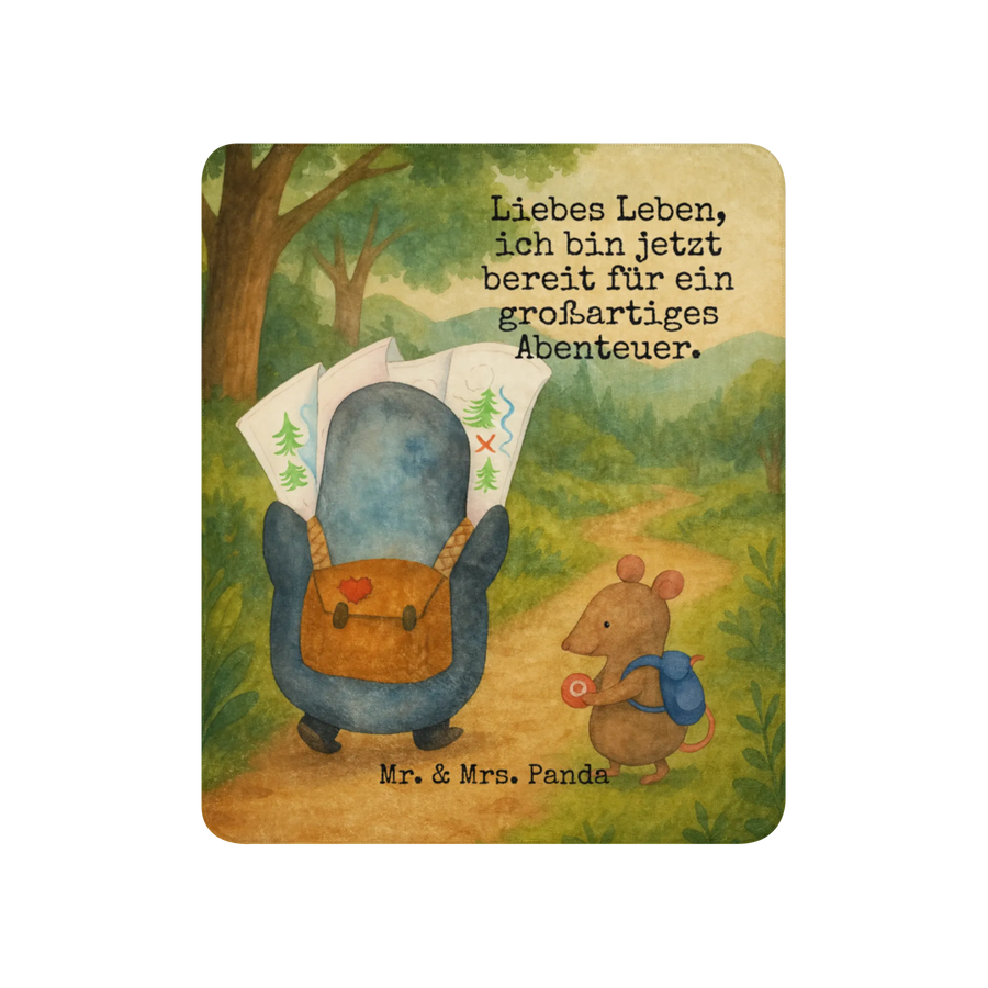 Koc Sherpa Pingwin i Mysz Wędrowcy Design - 130 x 155 cm - z napisem