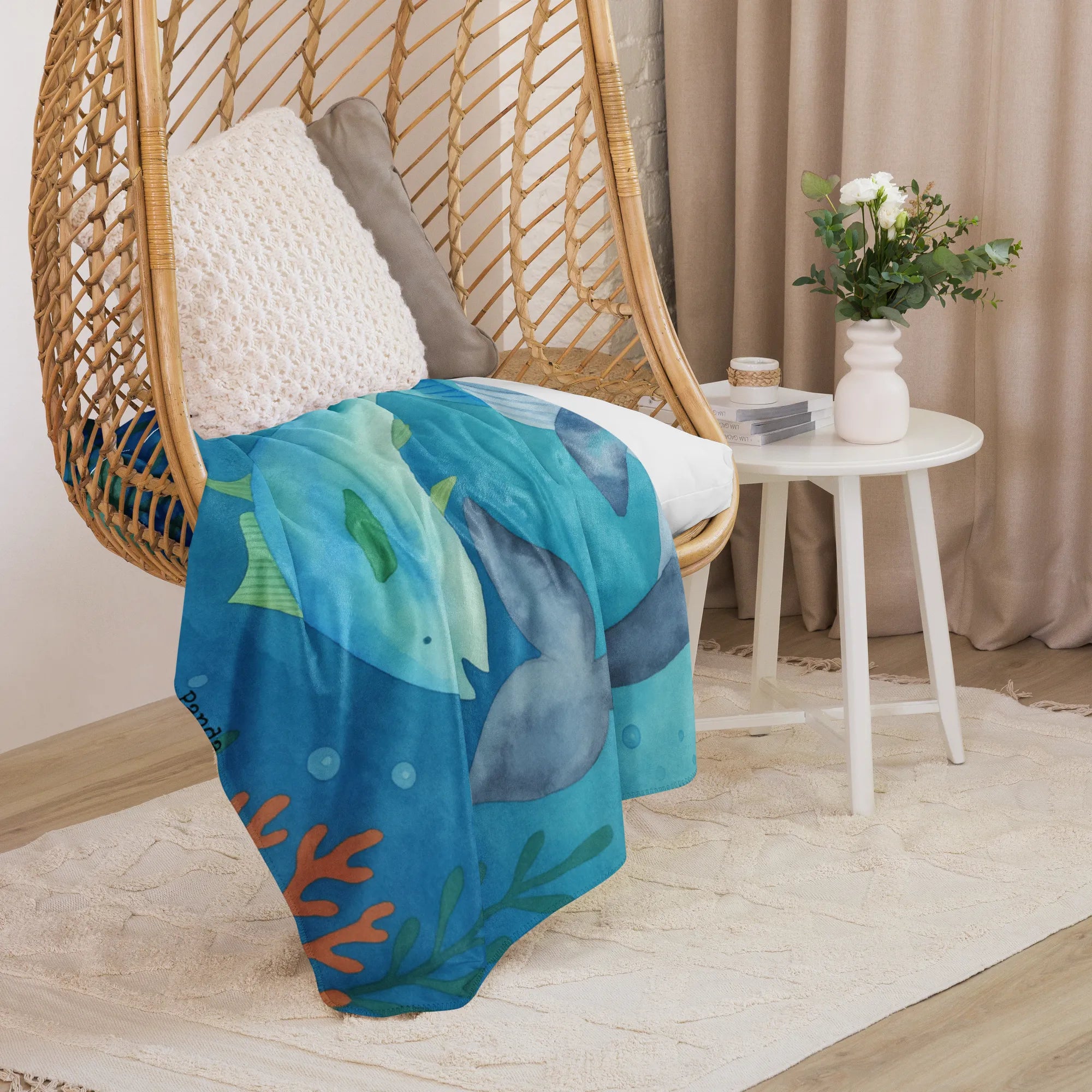 Koc Sherpa wieloryb tuńczyk Design - 100 x 150 cm - z napisem