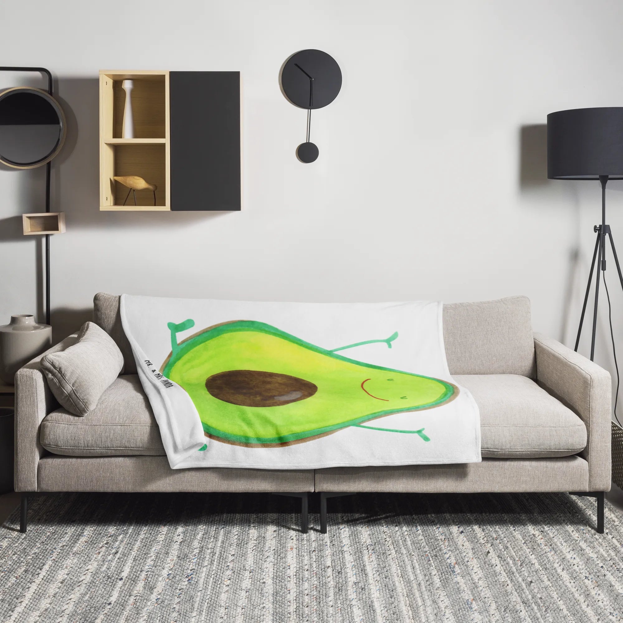 Koc Awokado Szczęśliwy - z napisem - Pastelowy żółty