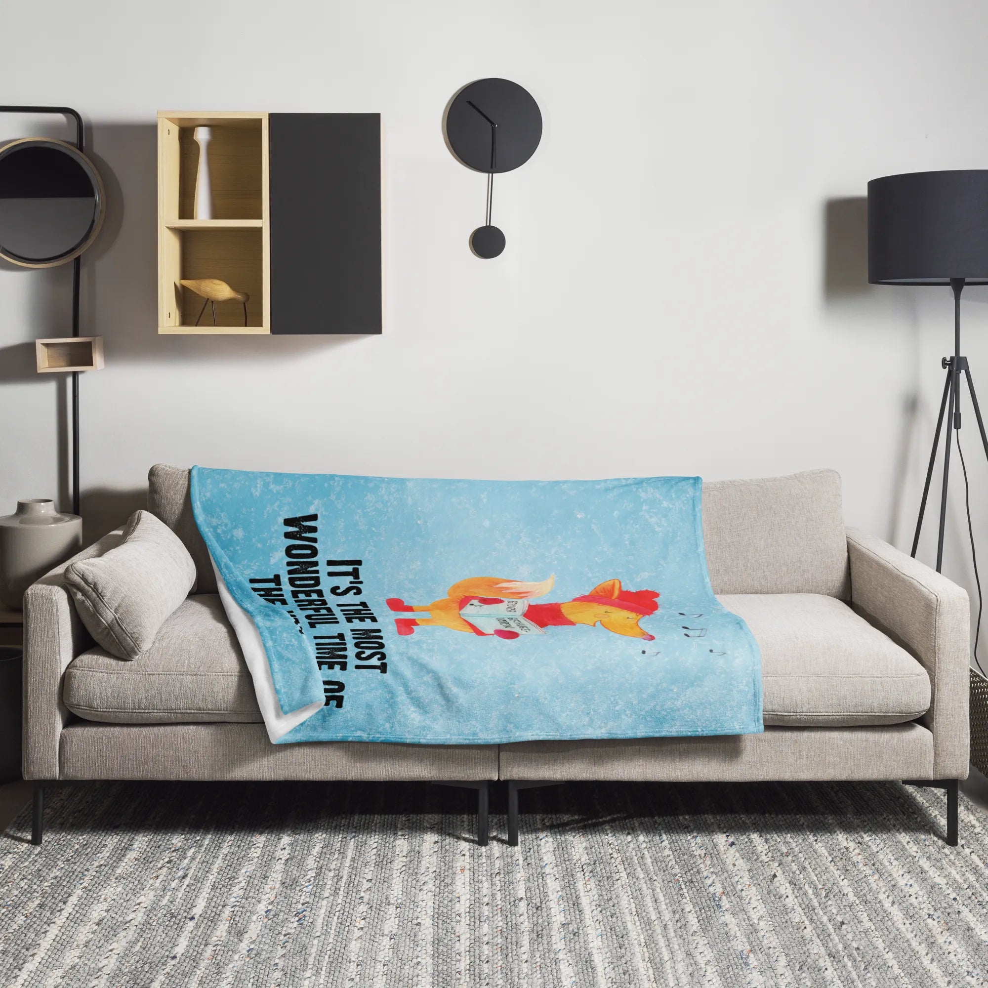Koc lis Śpiewak - z napisem - lodowoniebieski