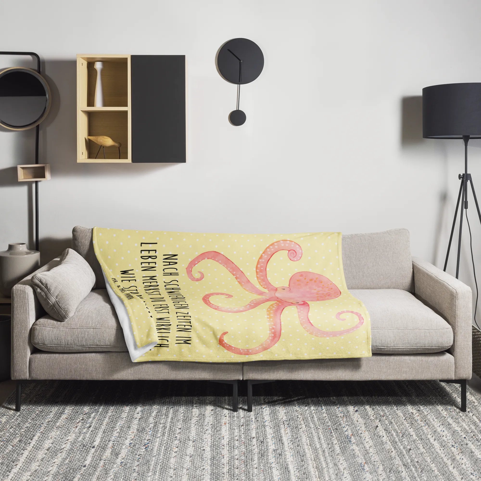 Koc Ośmiornica - z napisem - Żółty Pastel