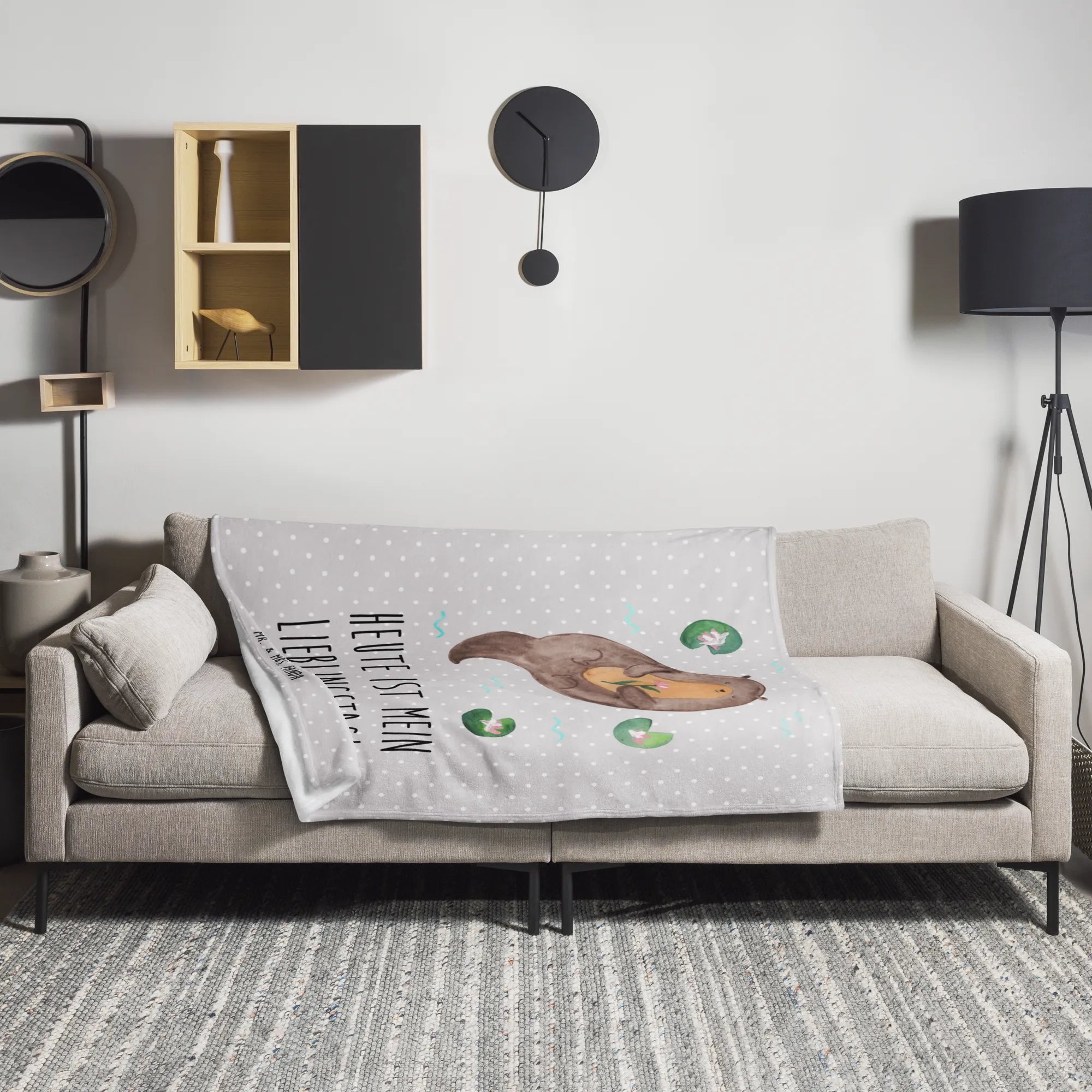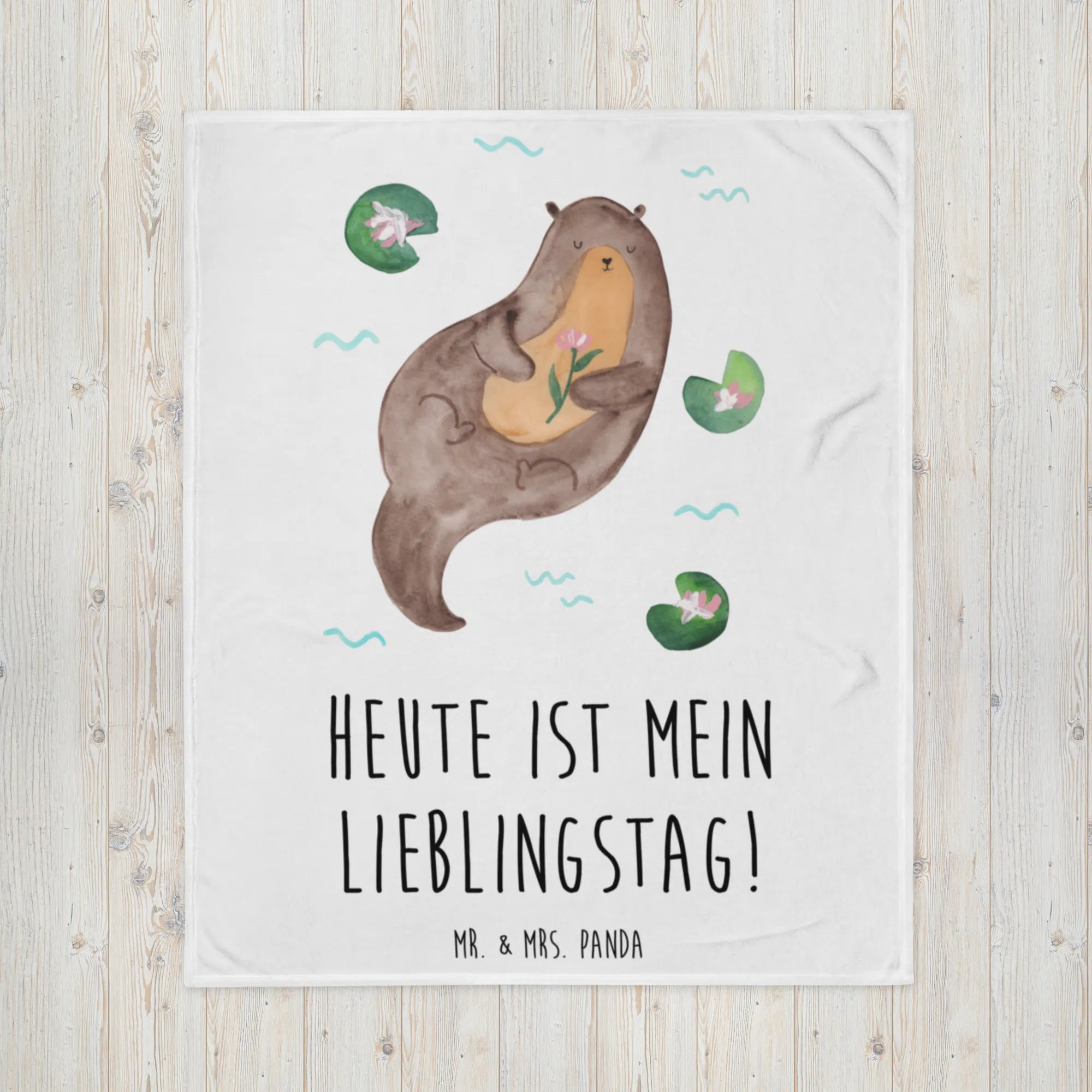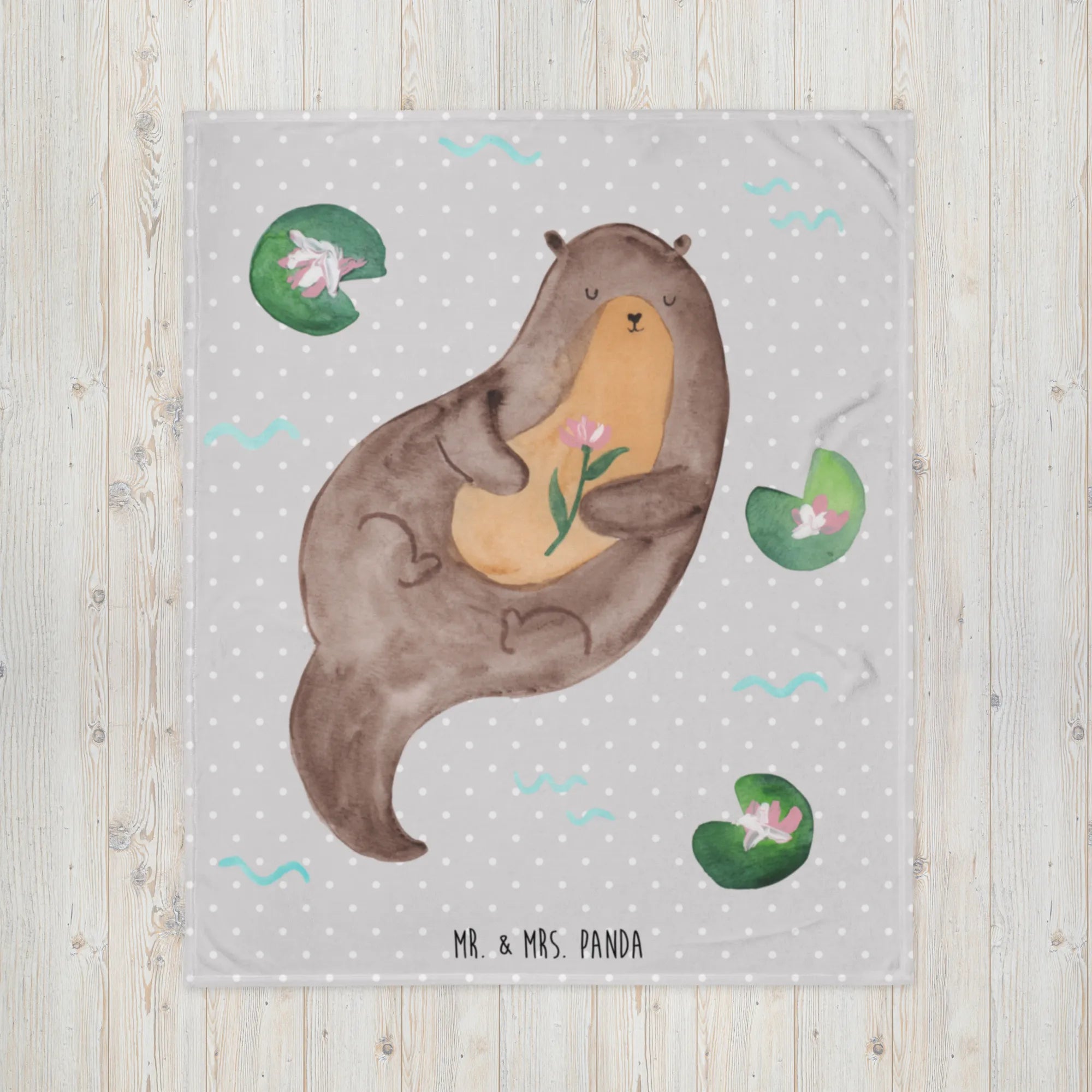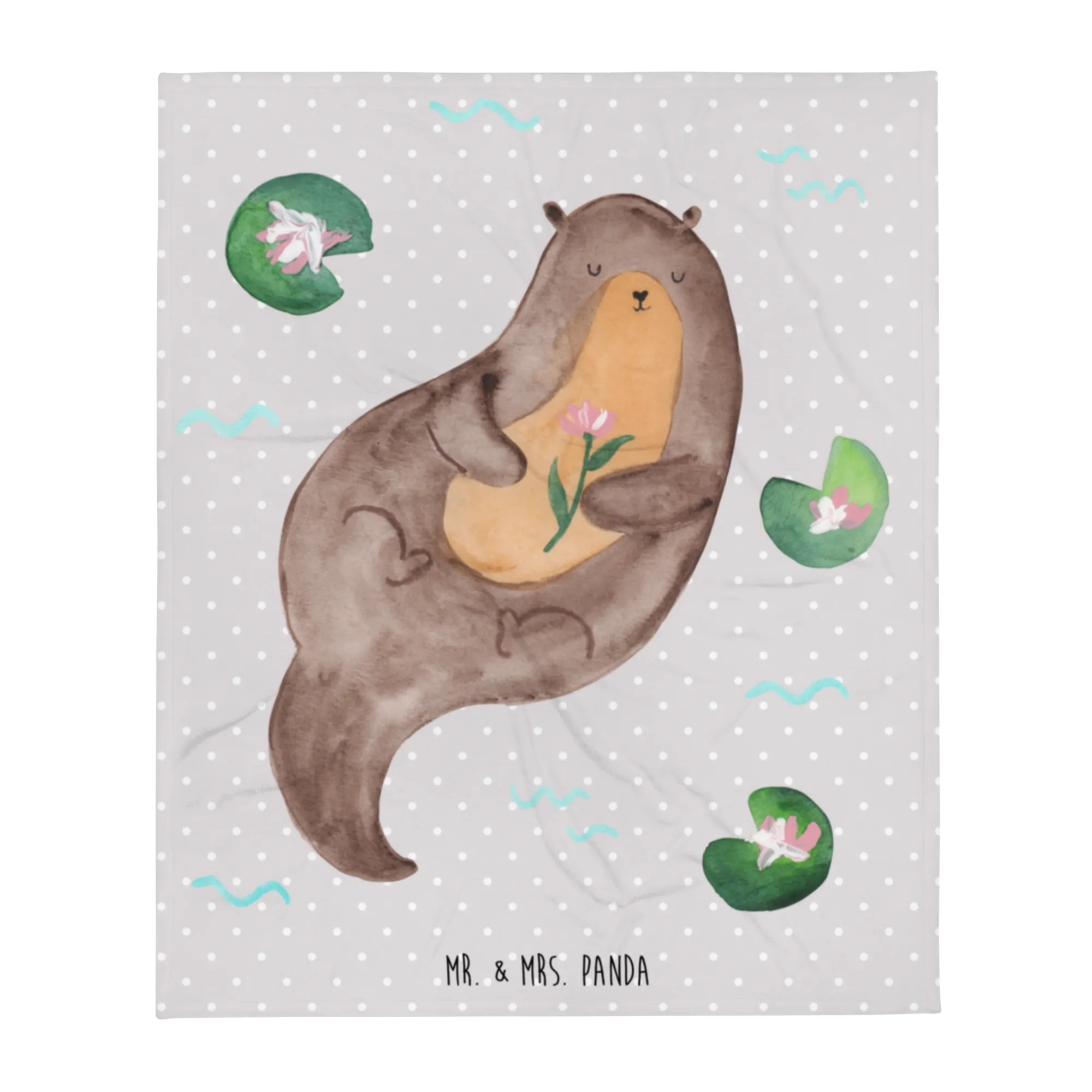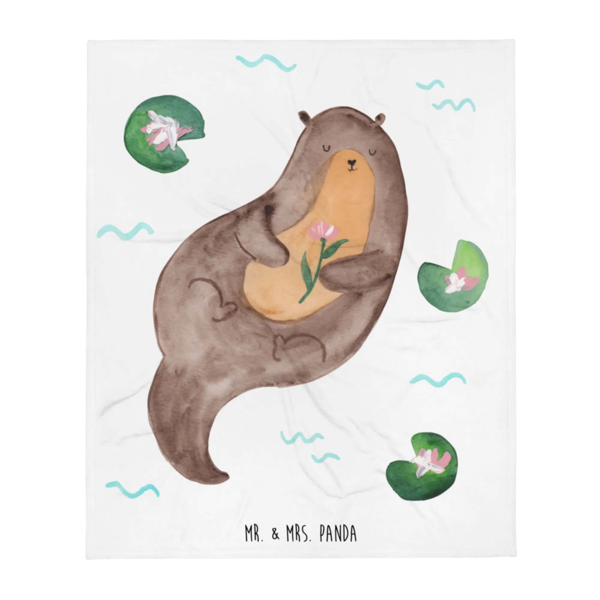 Ein kleines Geschenk mit großer Wirkung: Verschenke Wärme, Farbe und ein Lächeln – mit der Kuscheldecke „Otter mit Seerose“ aus der Otter - Kollektion von Mr. & Mrs. Panda.