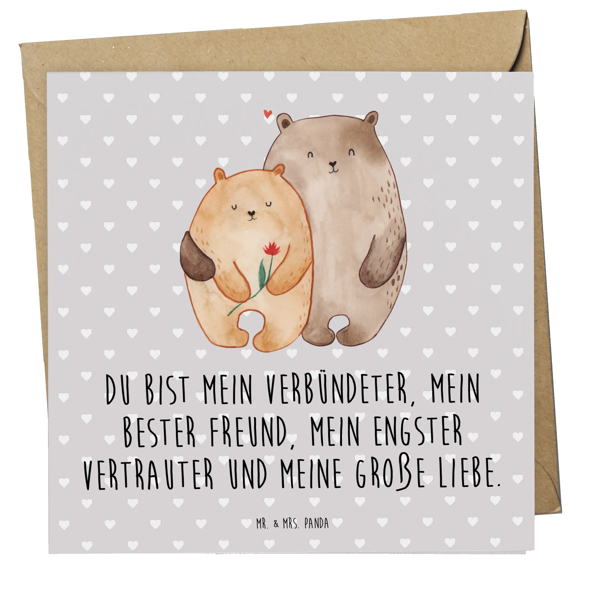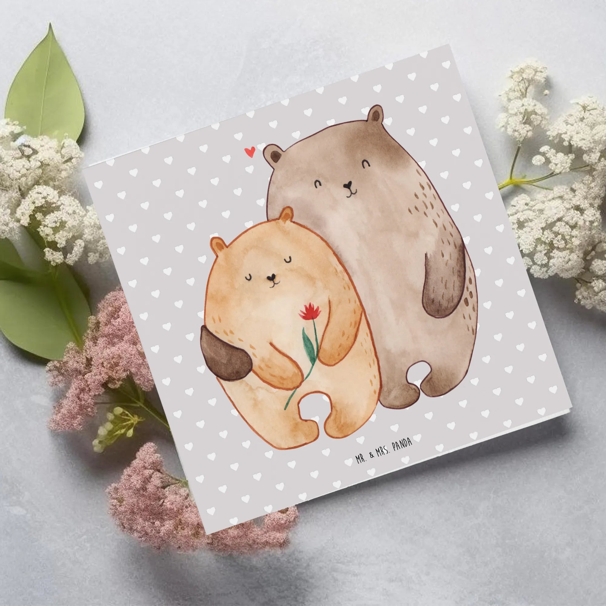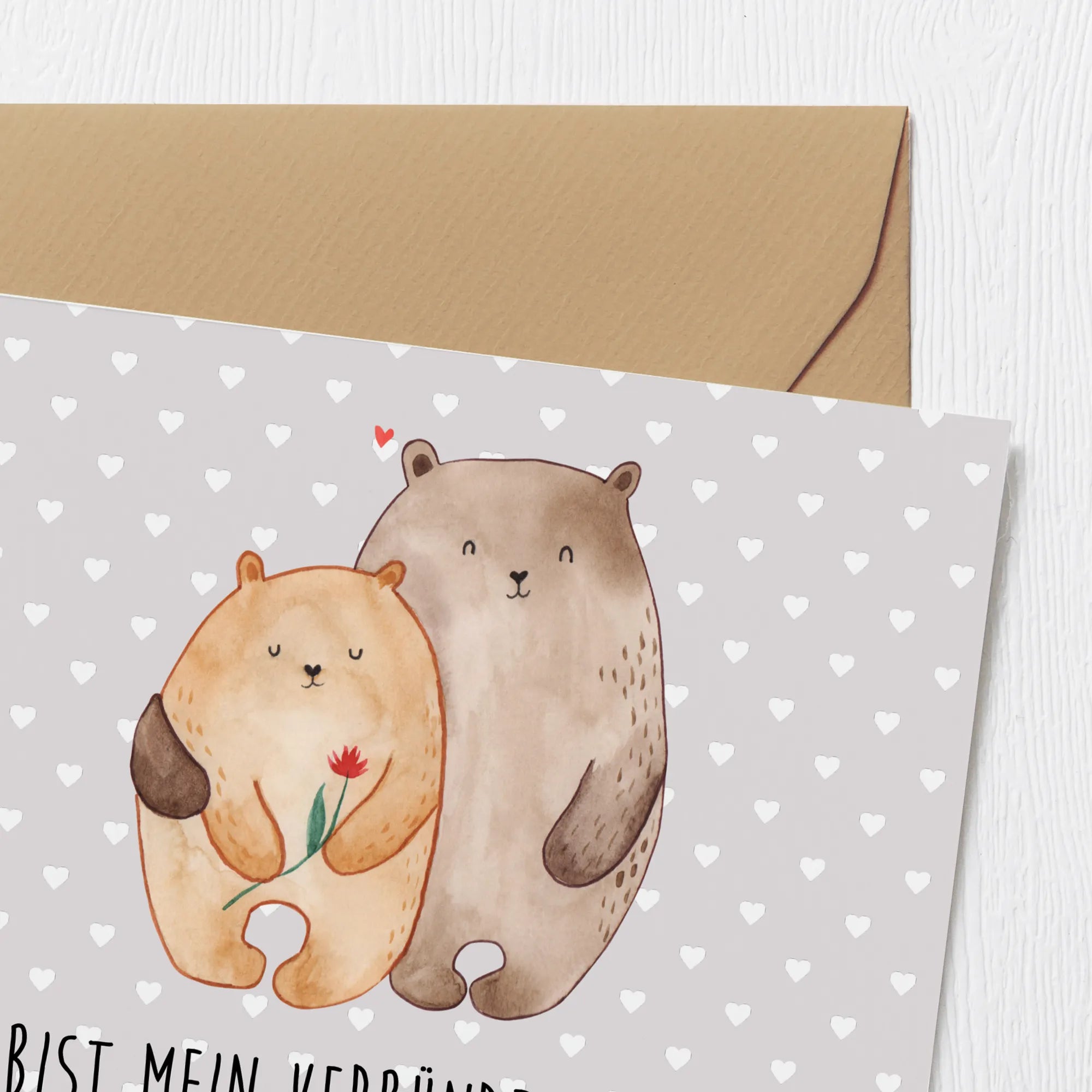 Karta Deluxe Miłość niedźwiedzi - z napisem - Pastelowy szary