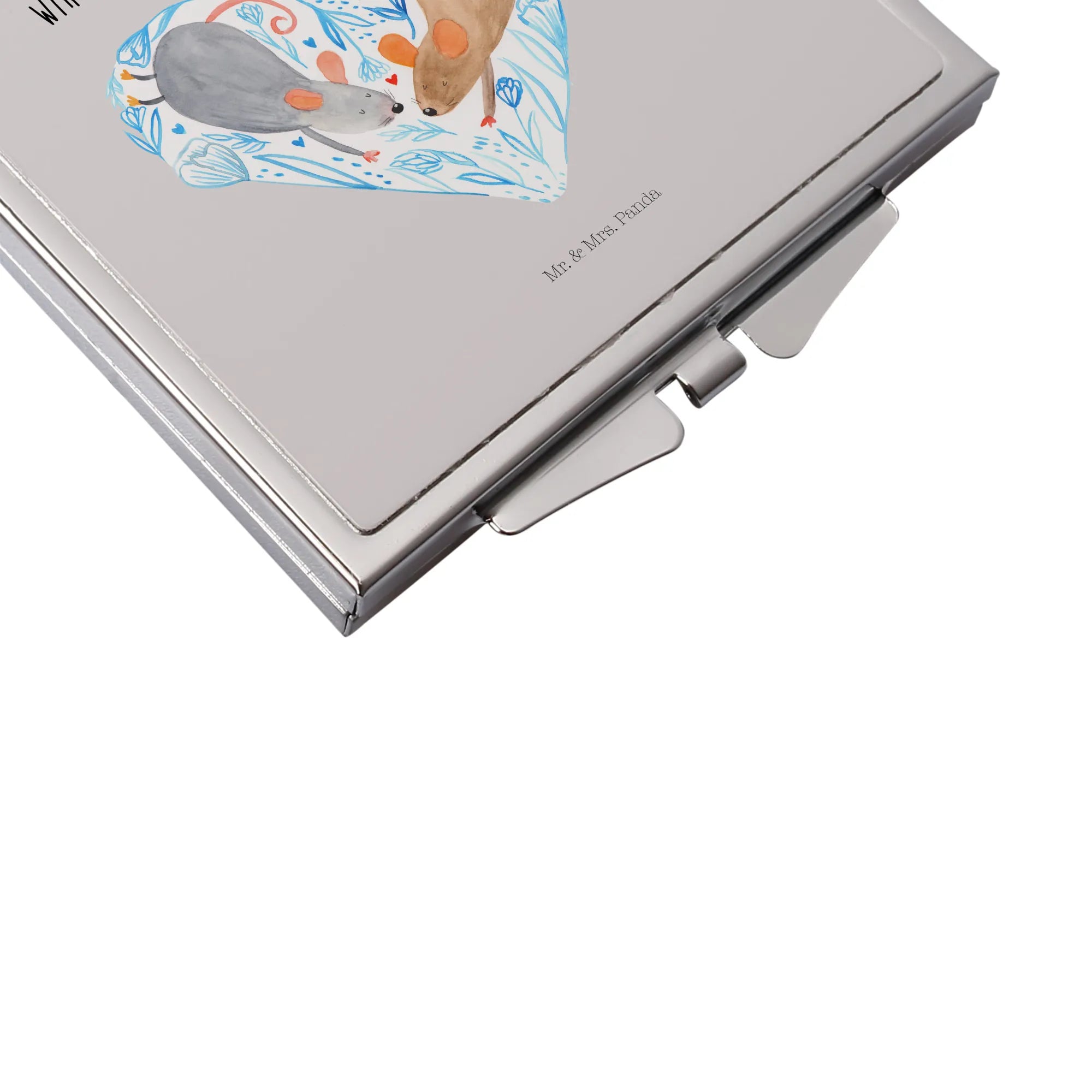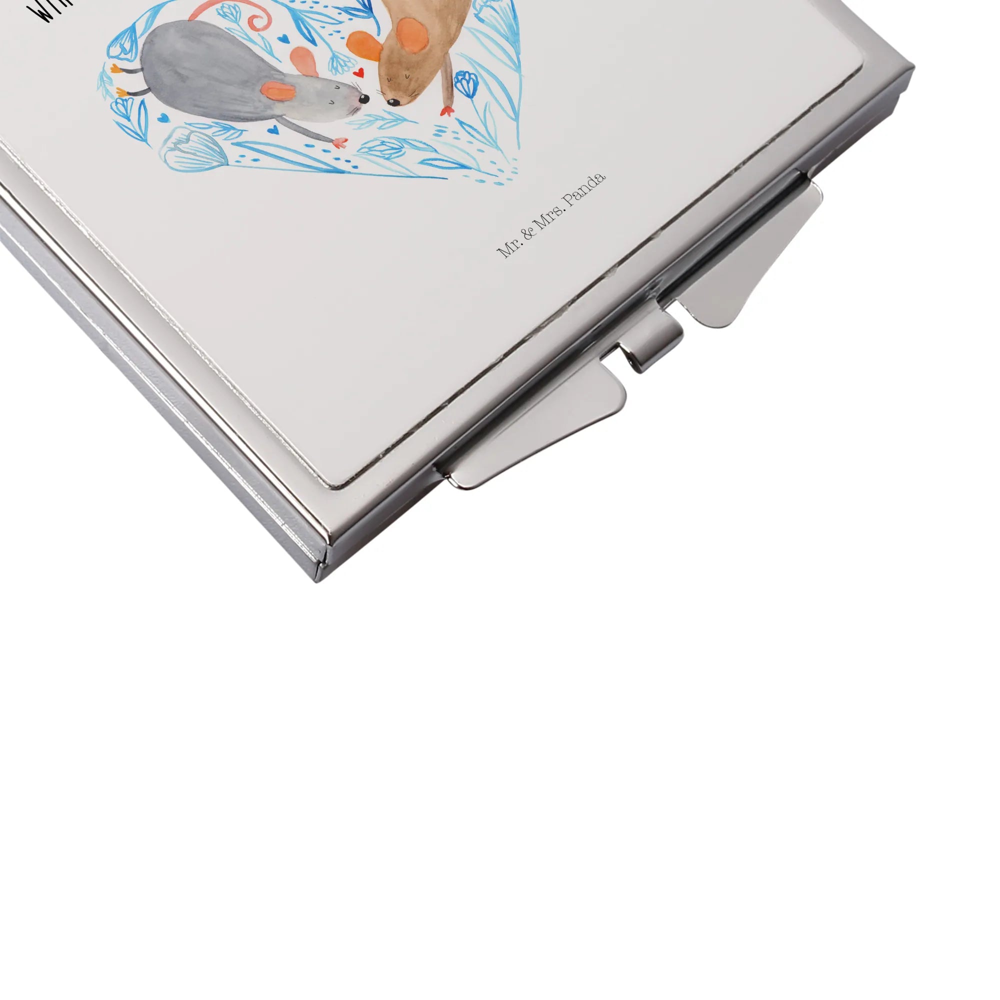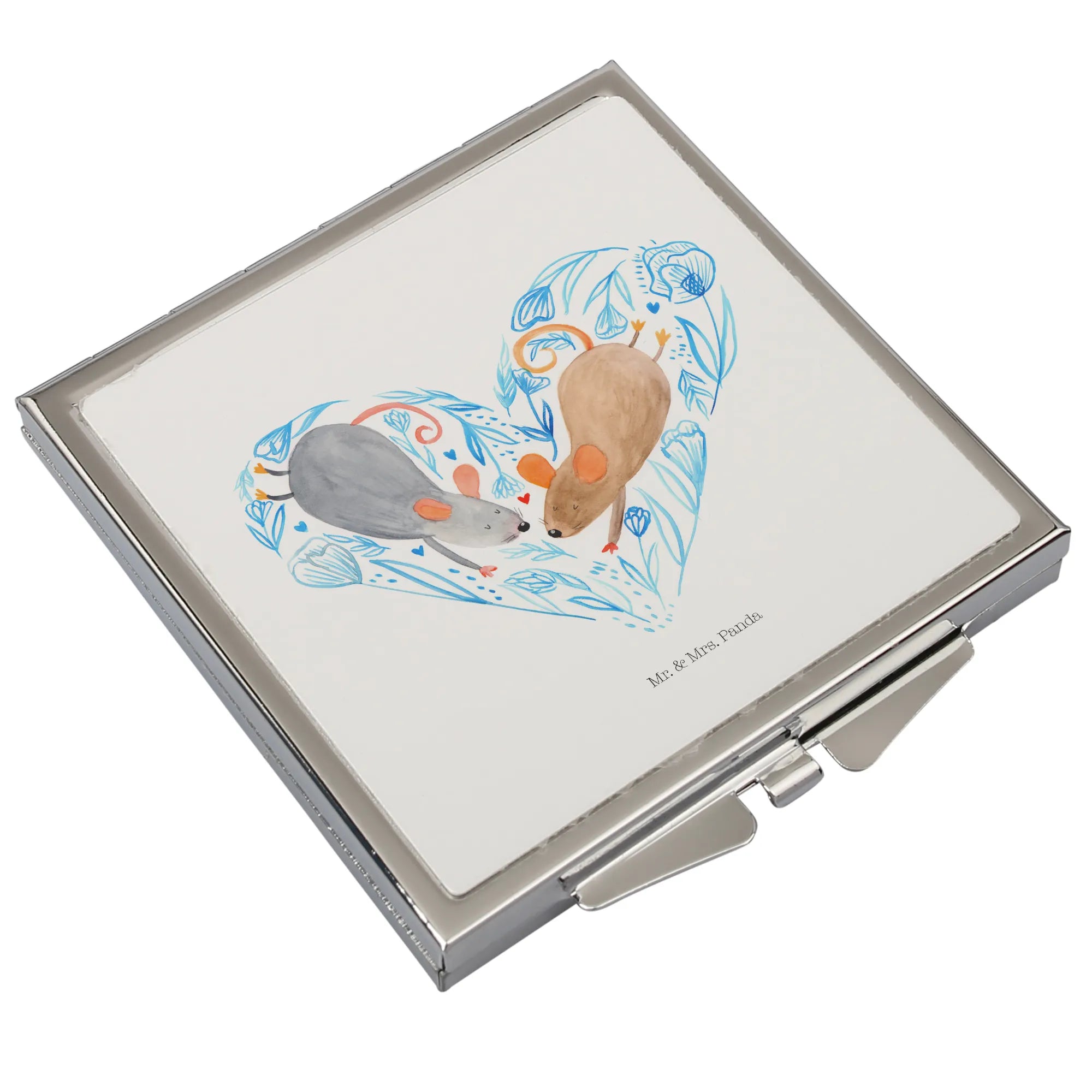Kwadratowe lusterko do torebki Myszy serce - z napisem - biały