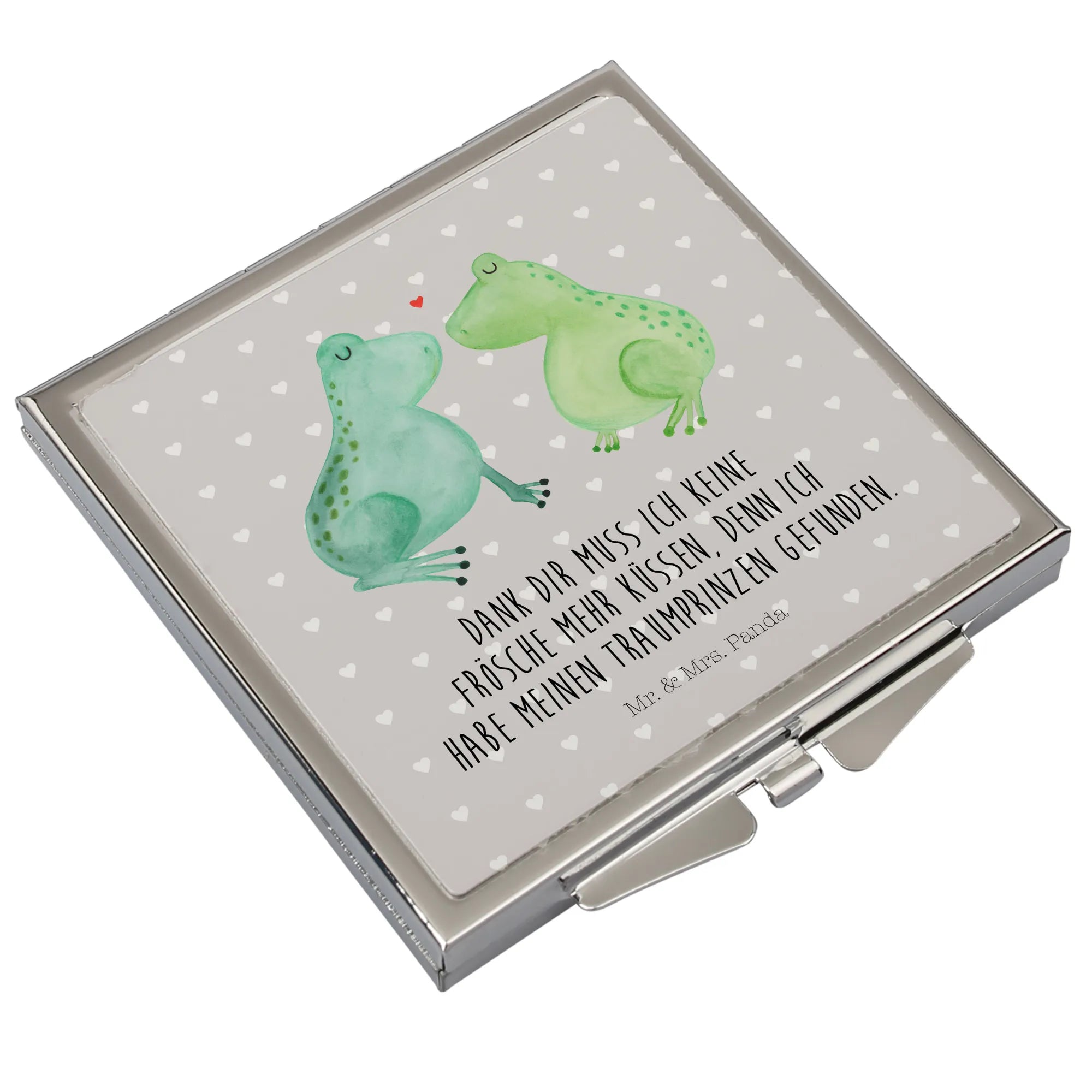 Kwadratowe lusterko do torebki Żabia miłość - z napisem - Pastelowy szary