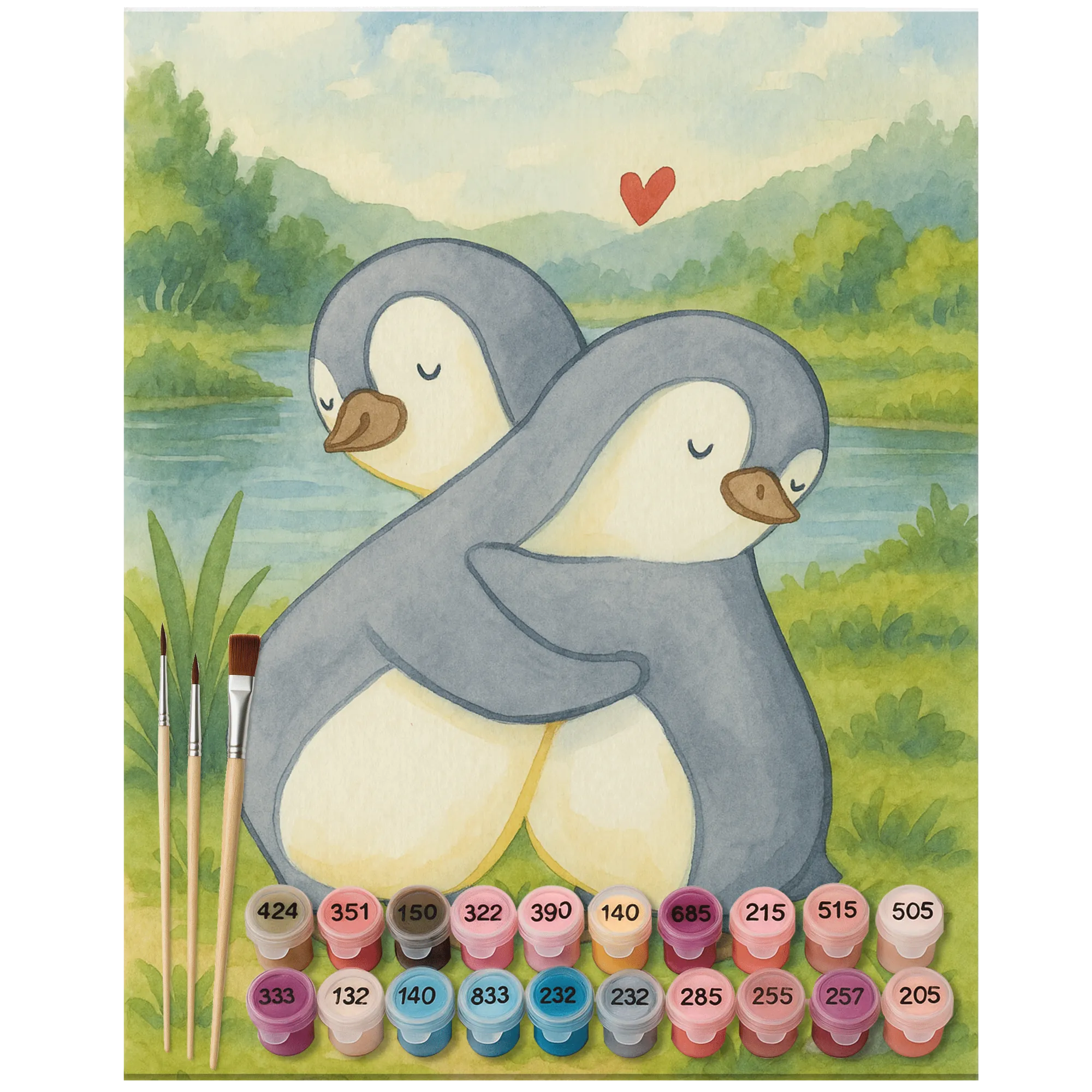 Malowanie według numerów Pingwiny przytulanie Design - Ohne Rahmen - 24 Farben (Standard)