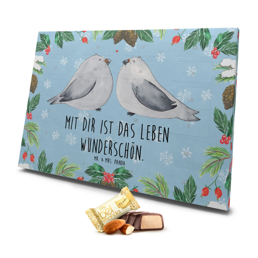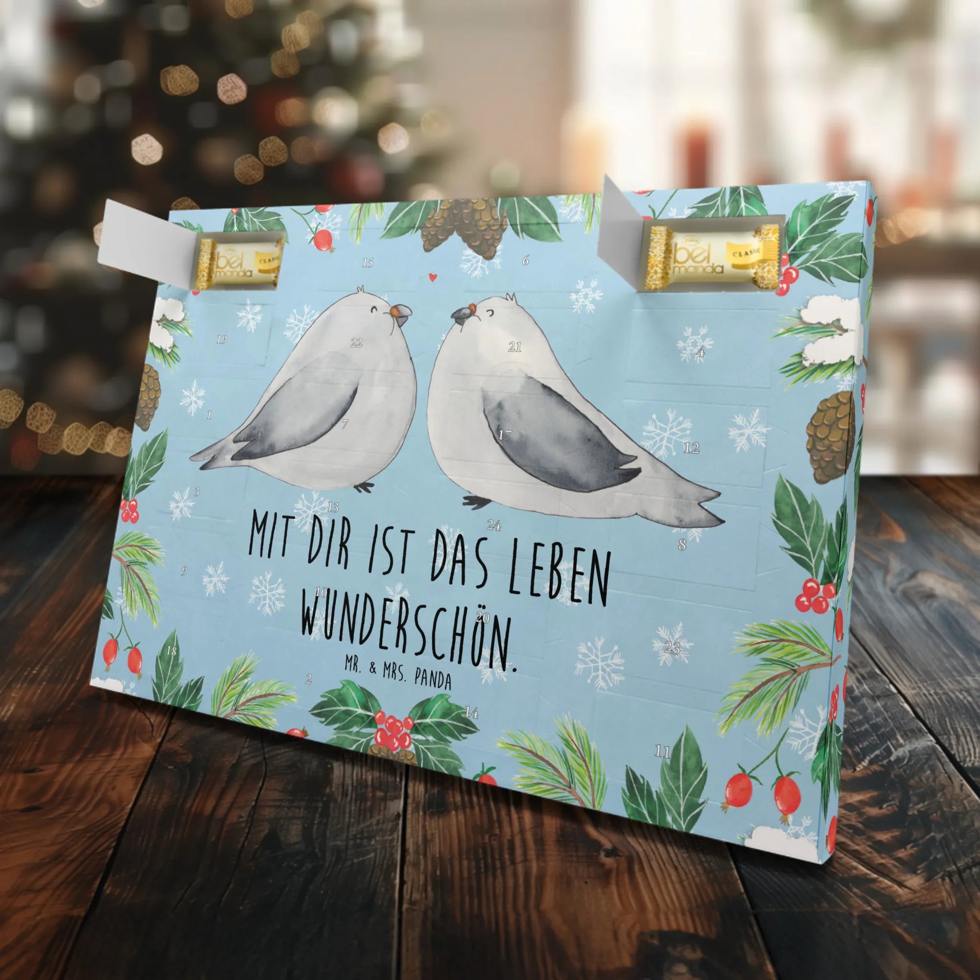 Marzipan Adventskalender Turteltauben Liebe - Blau Pastell