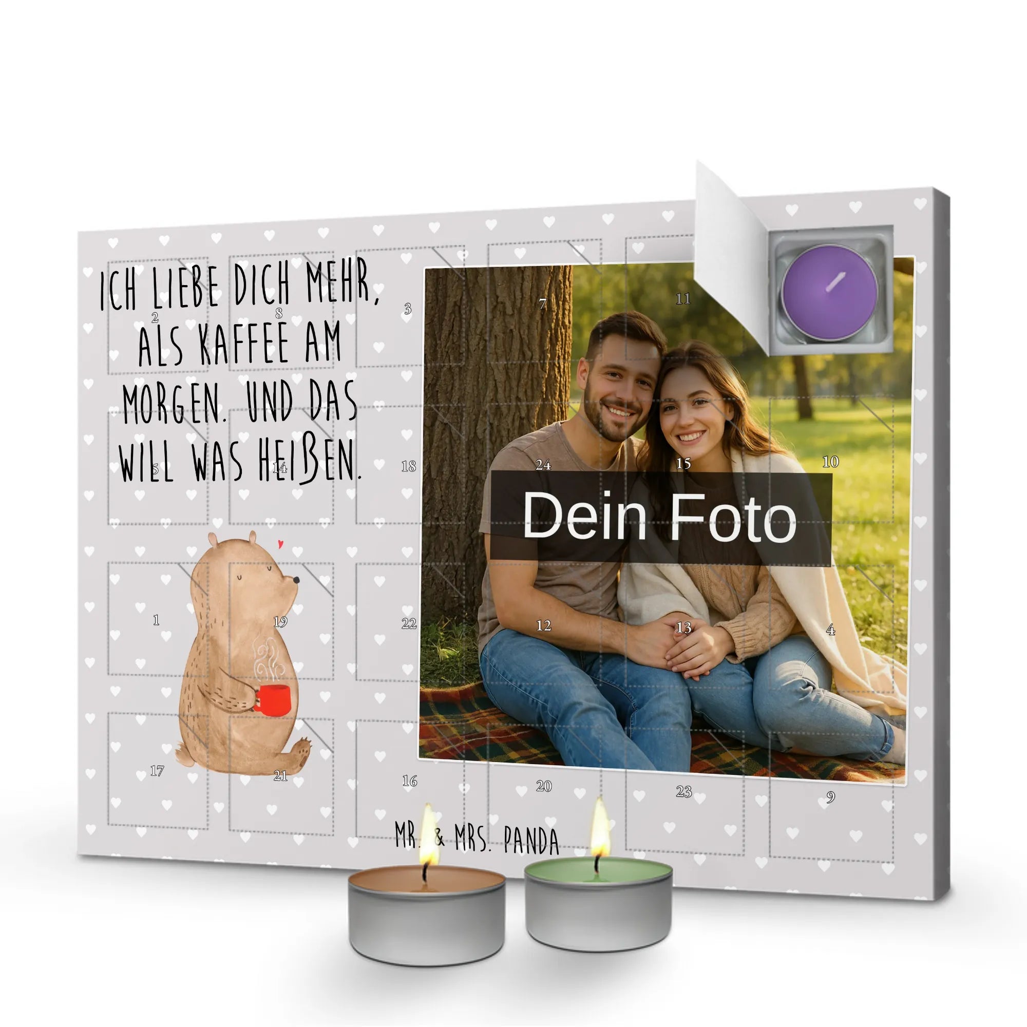Personalisierter Duftkerzen Foto Adventskalender Bär Morgenkaffee - Grau Pastell