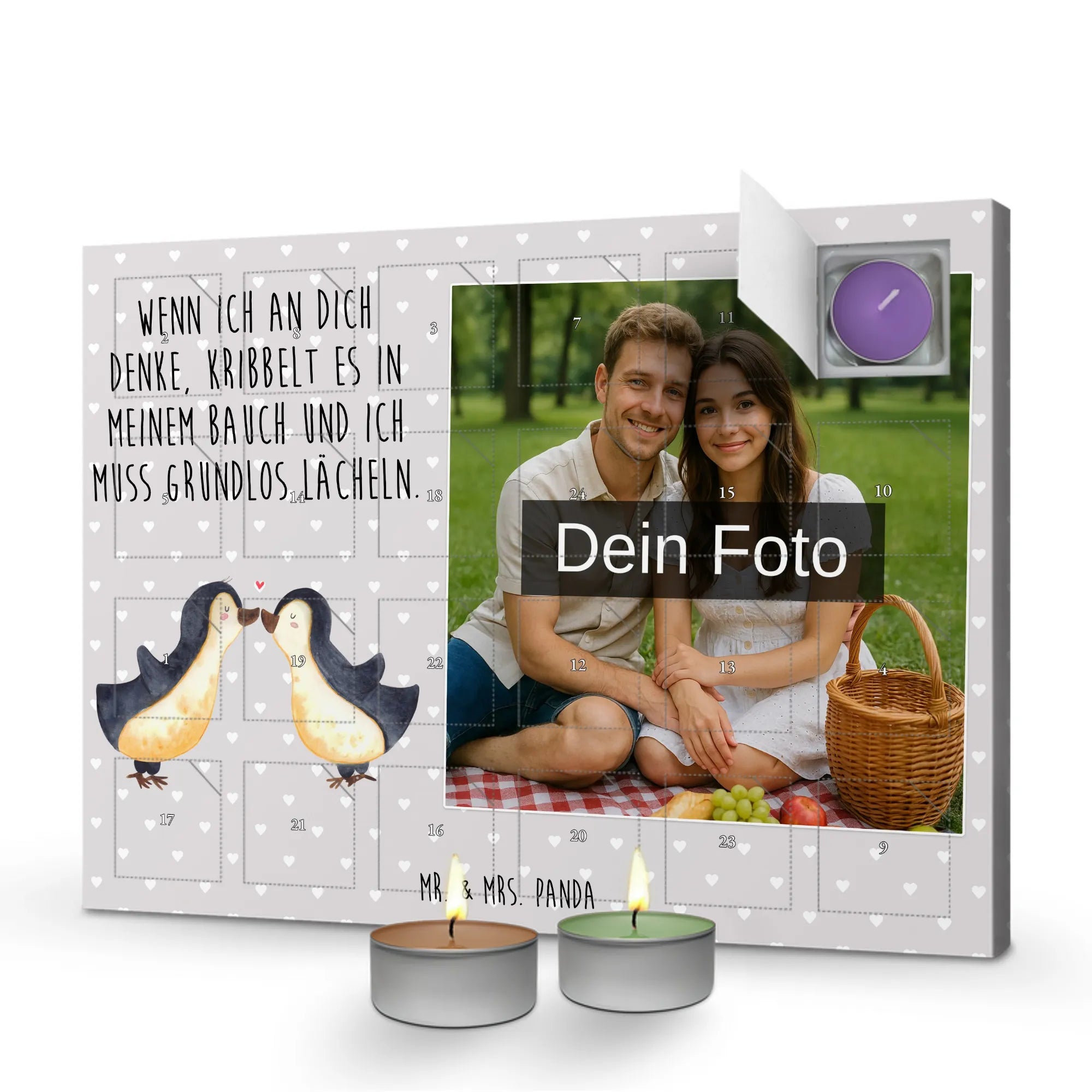 Personalisierter Duftkerzen Foto Adventskalender Pinguine Kuss - Grau Pastell