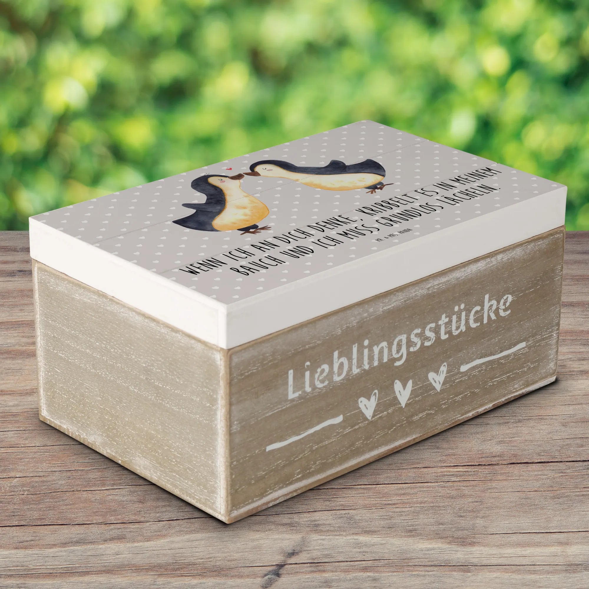 Skrzynia drewniana Pingwiny Pocałunek - 19 x 12 cm - biały