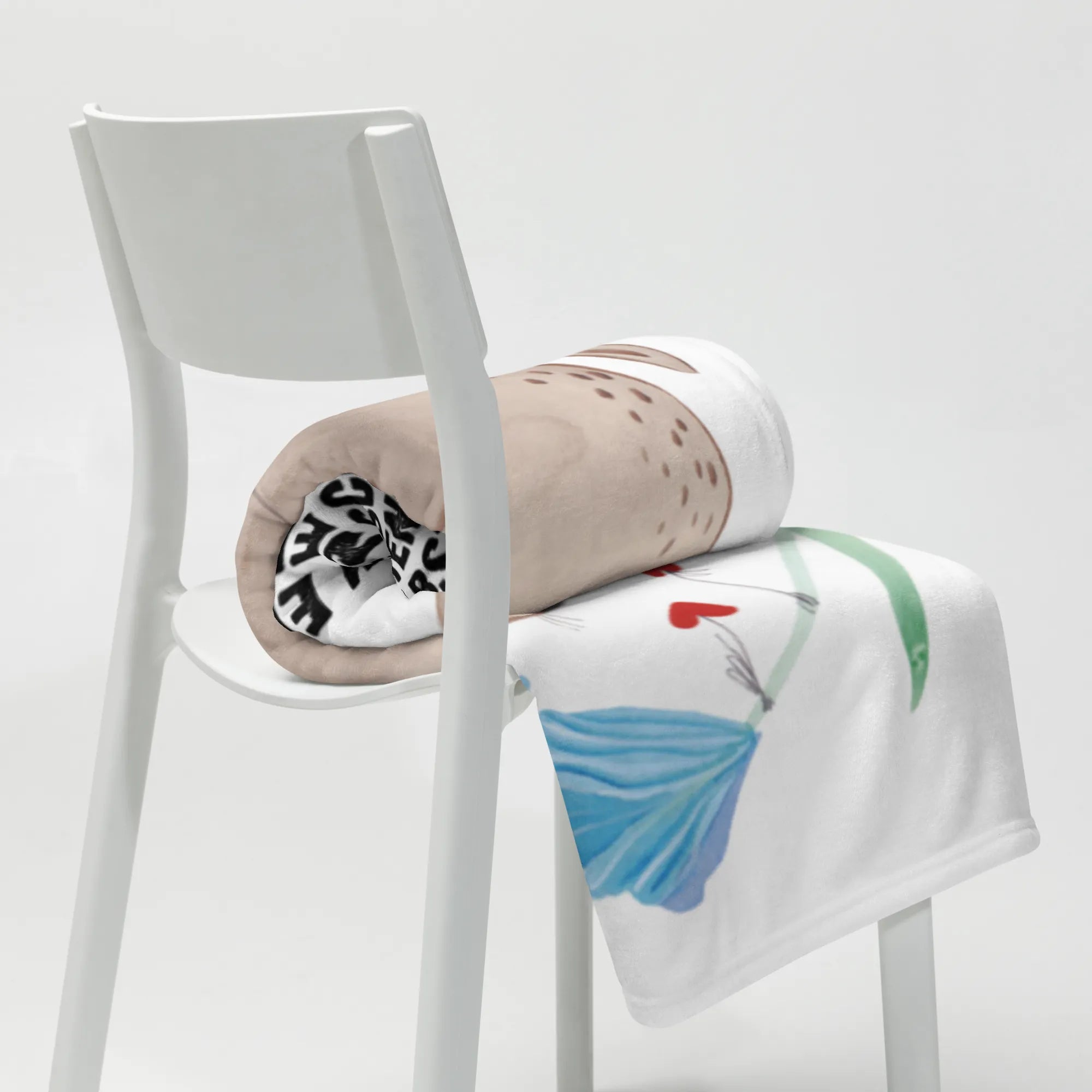 Kocyk dla niemowląt królik kwiat - z napisem - biały