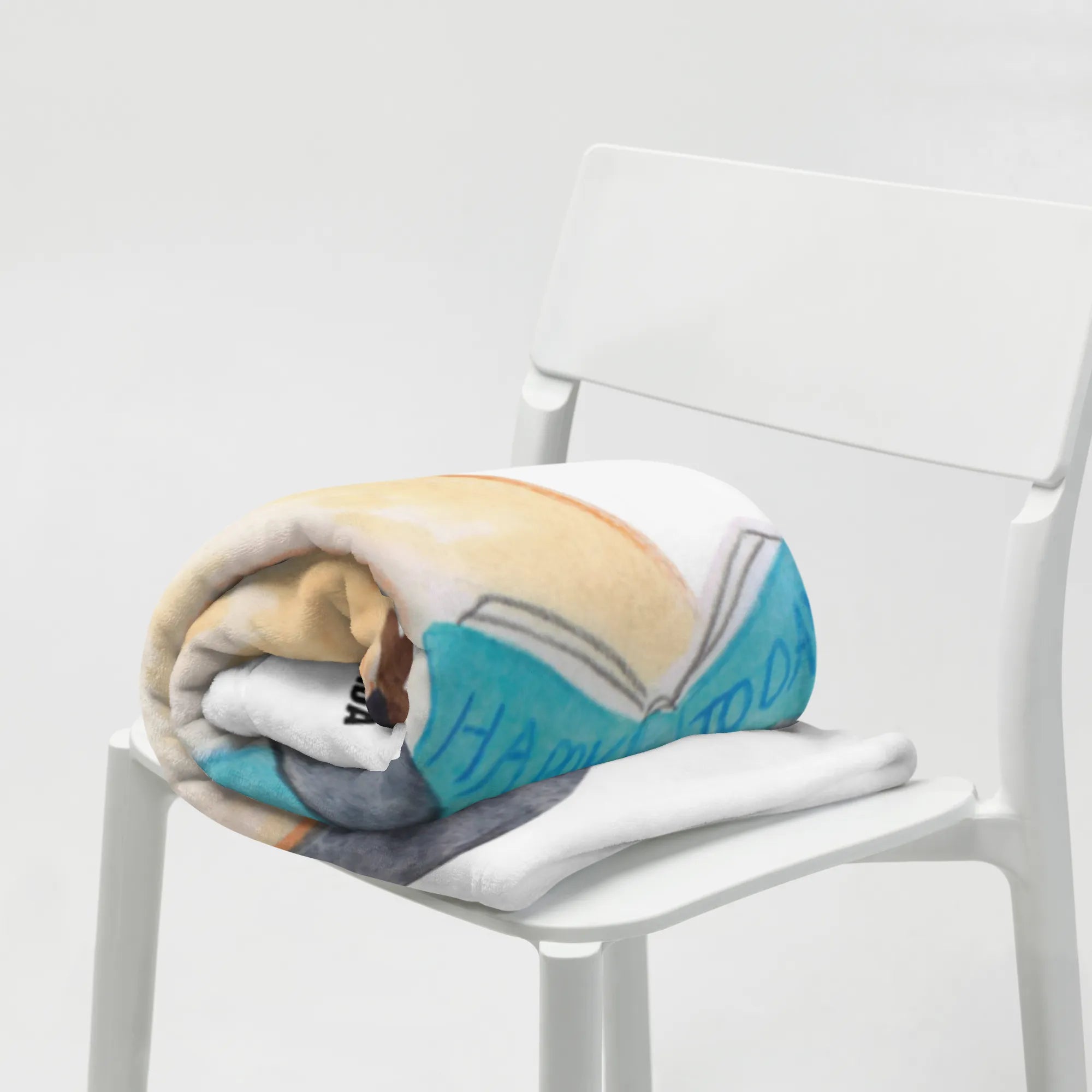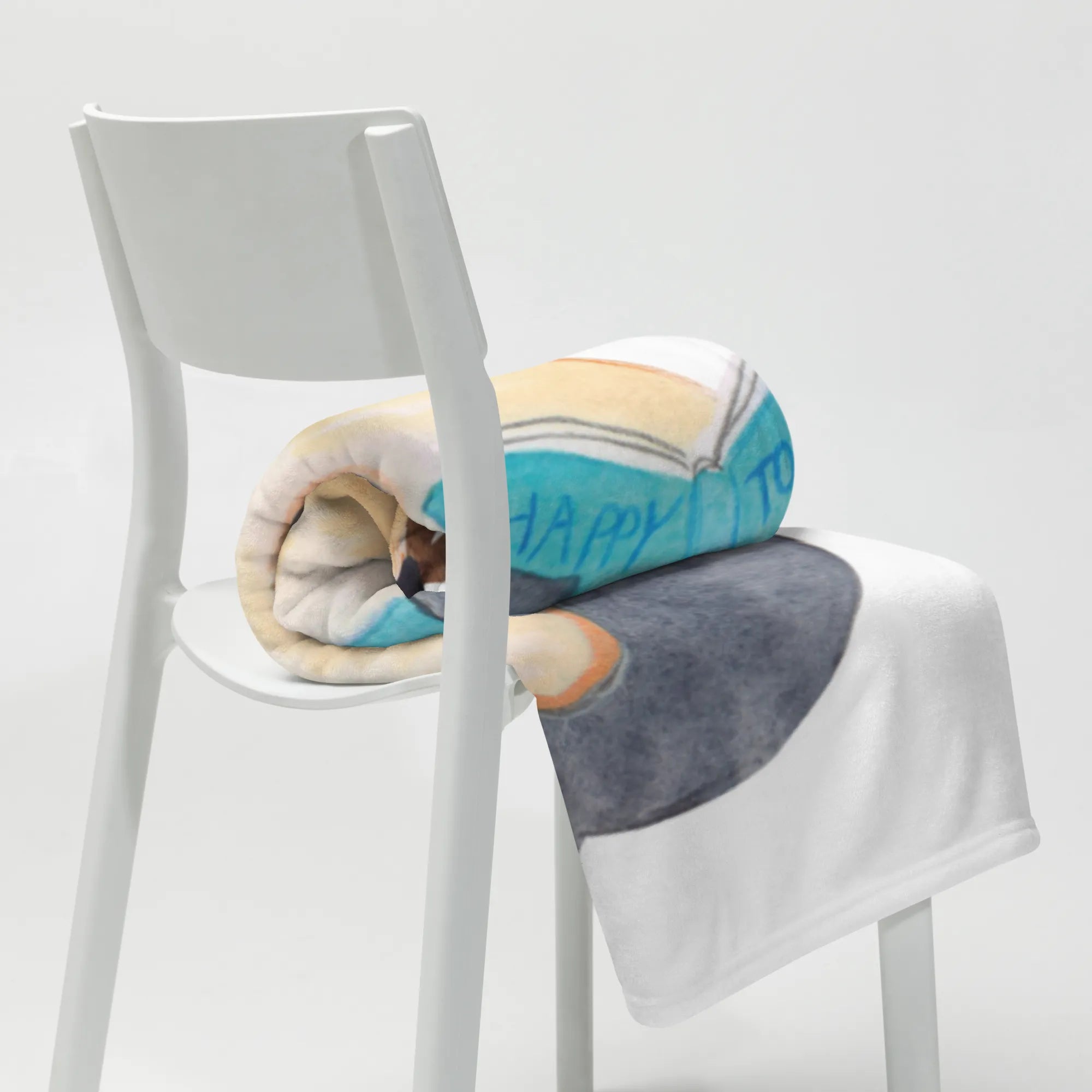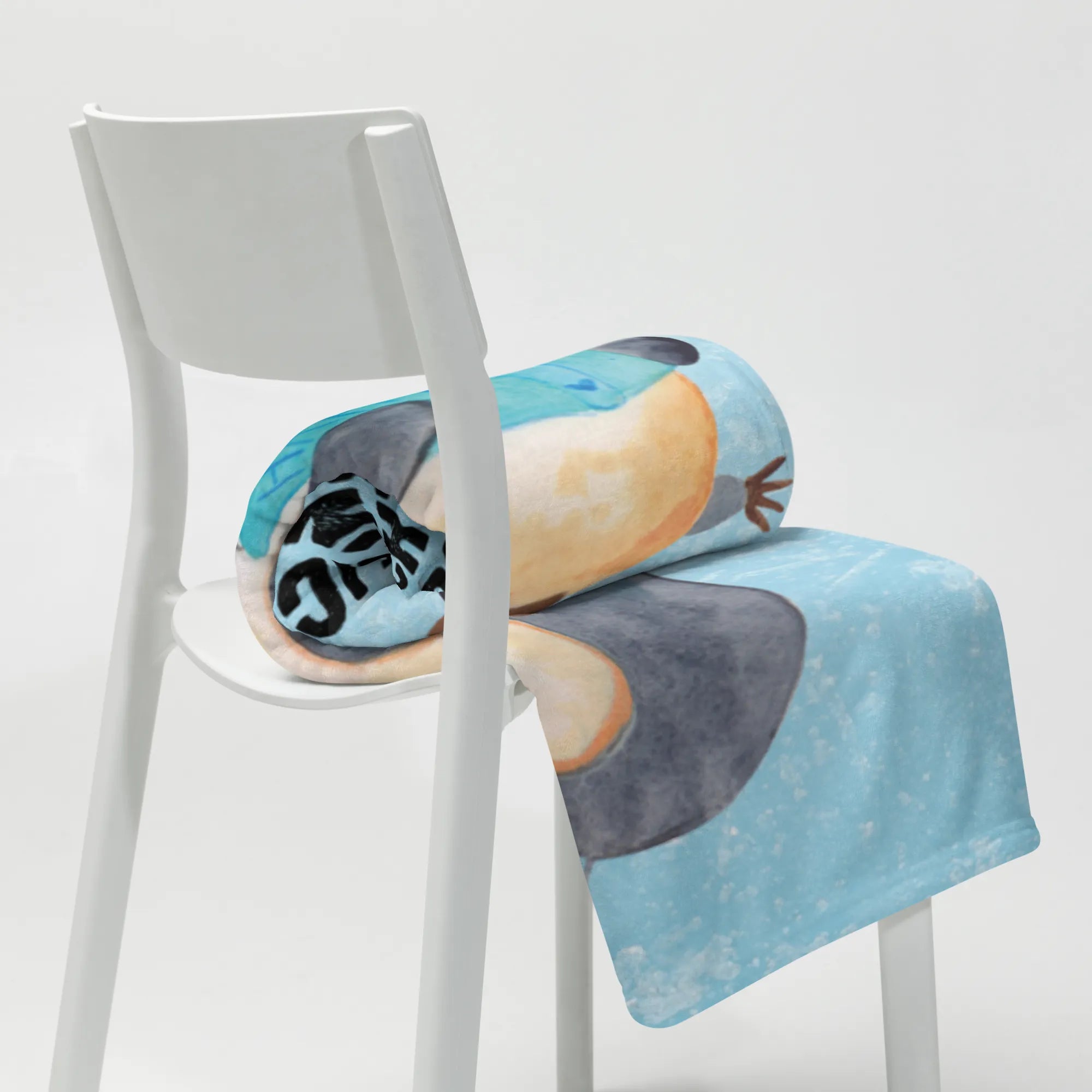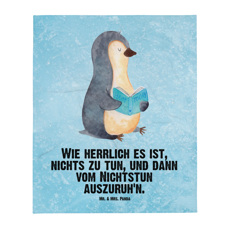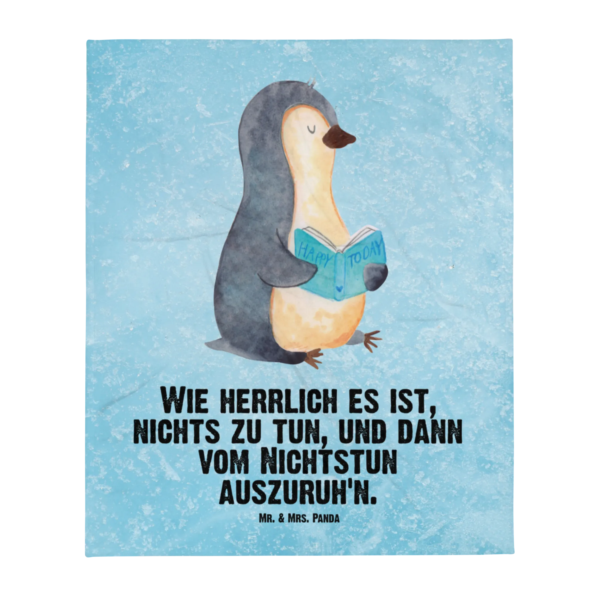Kocyk dla niemowląt pingwin książka - z napisem - lodowoniebieski