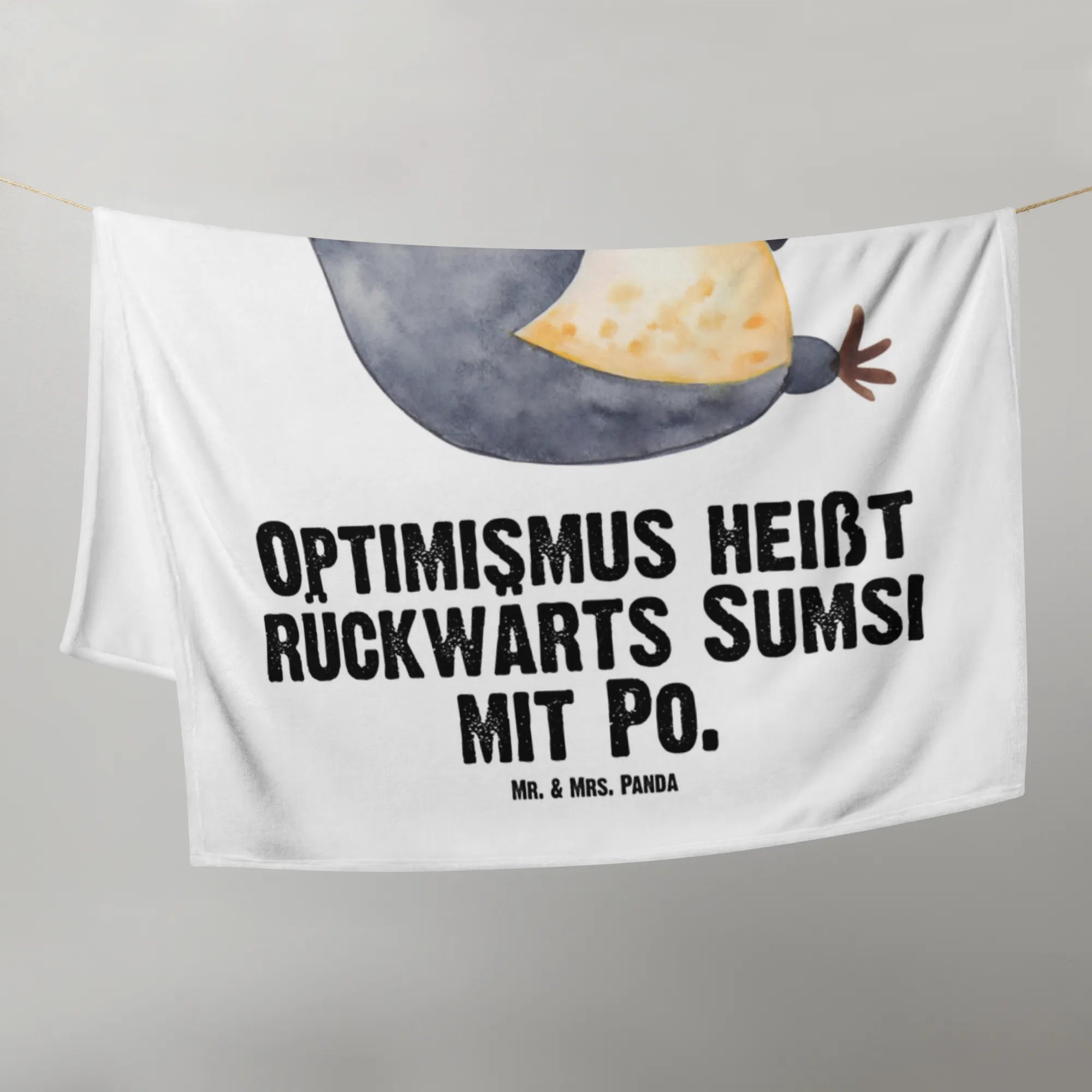 Kocyk dla niemowląt pingwin Śmiech - z napisem - lodowoniebieski
