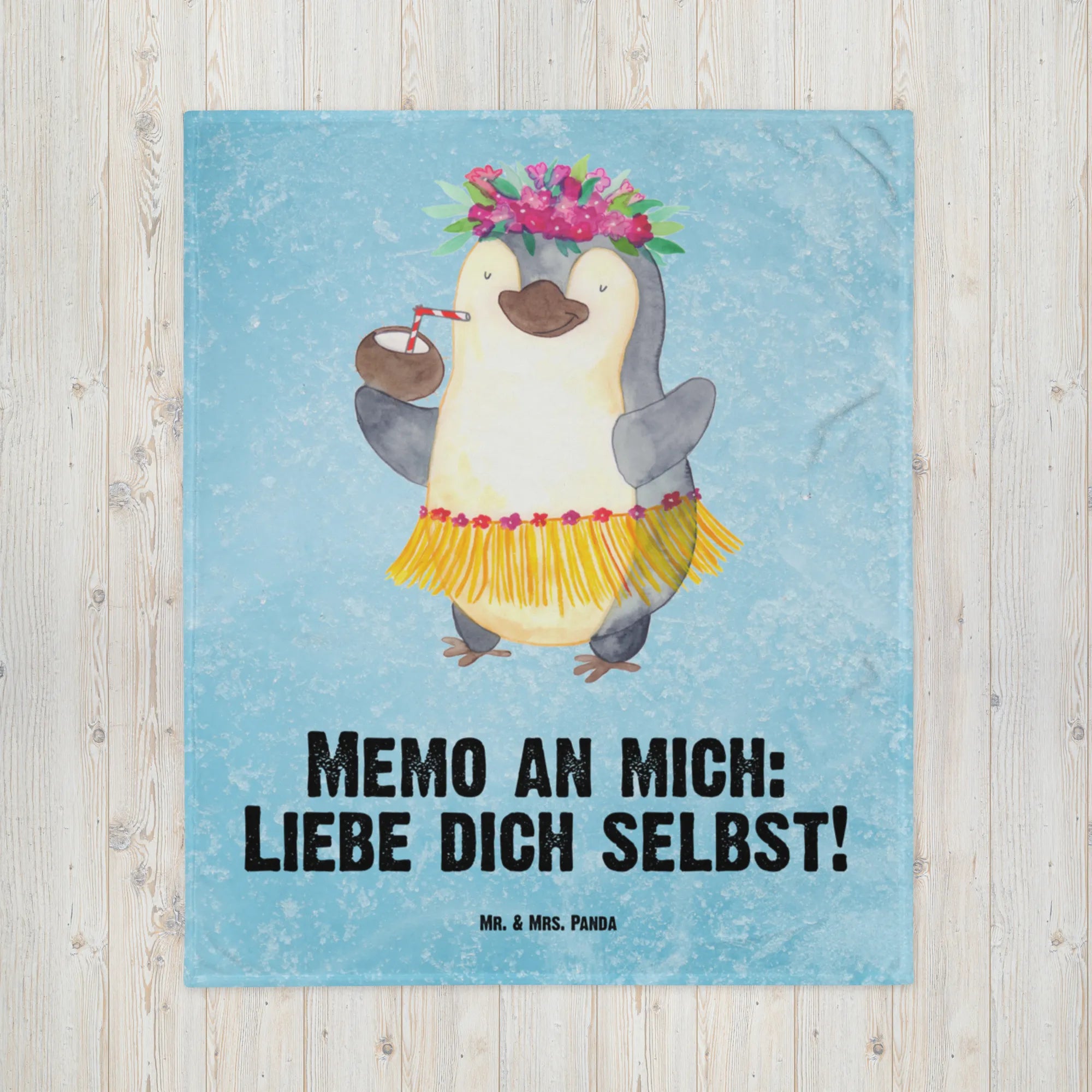 Kocyk dla niemowląt Pingwin z Kokosem - z napisem - lodowoniebieski