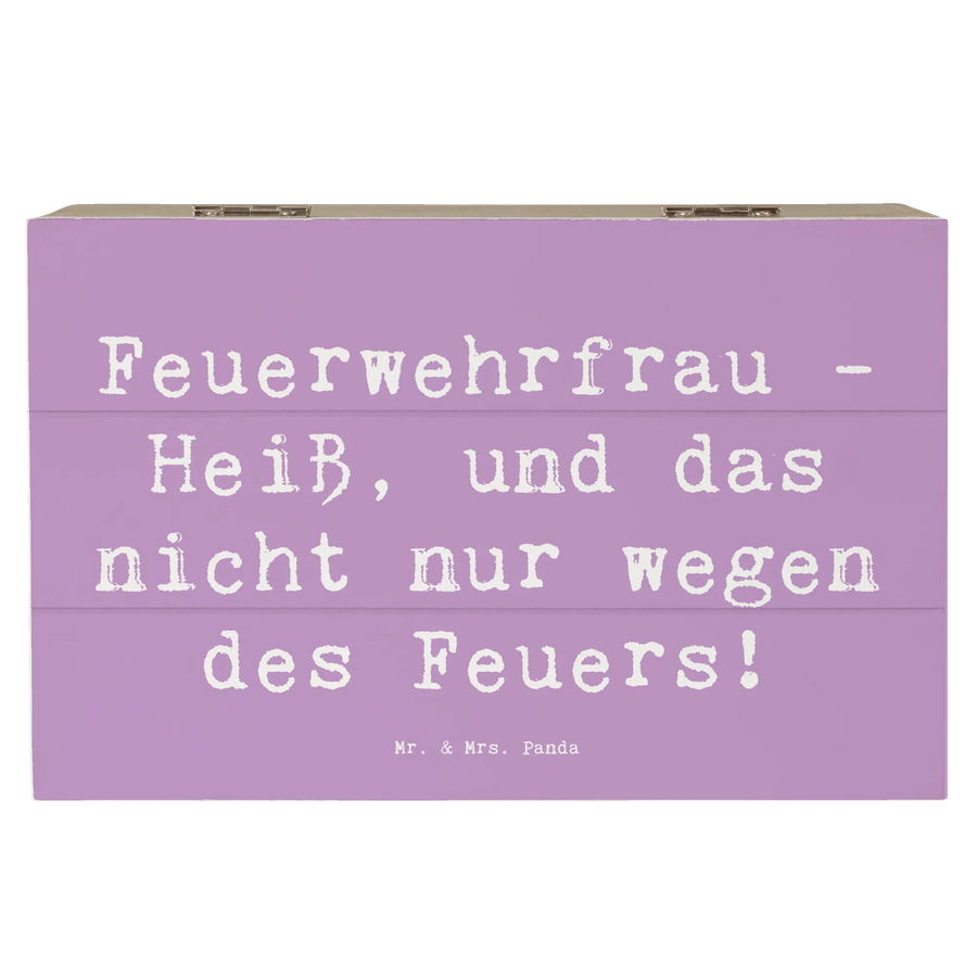 Die Holzkiste "Feuerwehrfrau - Heiß, und das nicht nur wegen des Feuers!" von Mr. & Mrs. Panda ist das perfekte Geschenk für alle Feuerwehrfrauen und solche, die es werden wollen! Diese wunderschöne Holzkiste mit einem liebevollen und humorvollen Spruch ist mehr als nur ein praktischer Aufbewahrungsort. Sie eignet sich hervorragend als Erinnerungskiste für wertvolle Momente aus der Kindheit, Kommunion oder Konfirmation und kann auch als nachhaltige Geschenkbox genutzt werden.