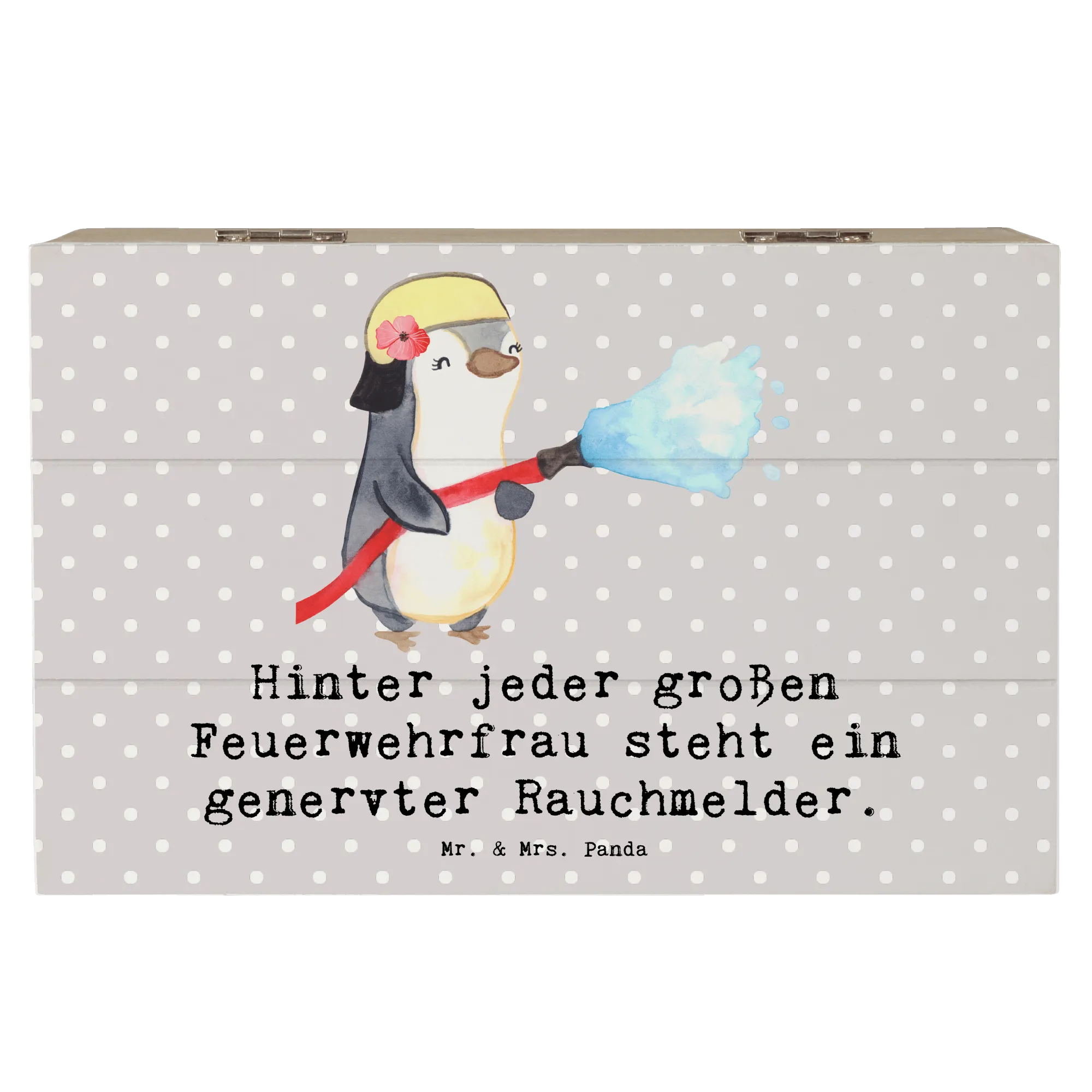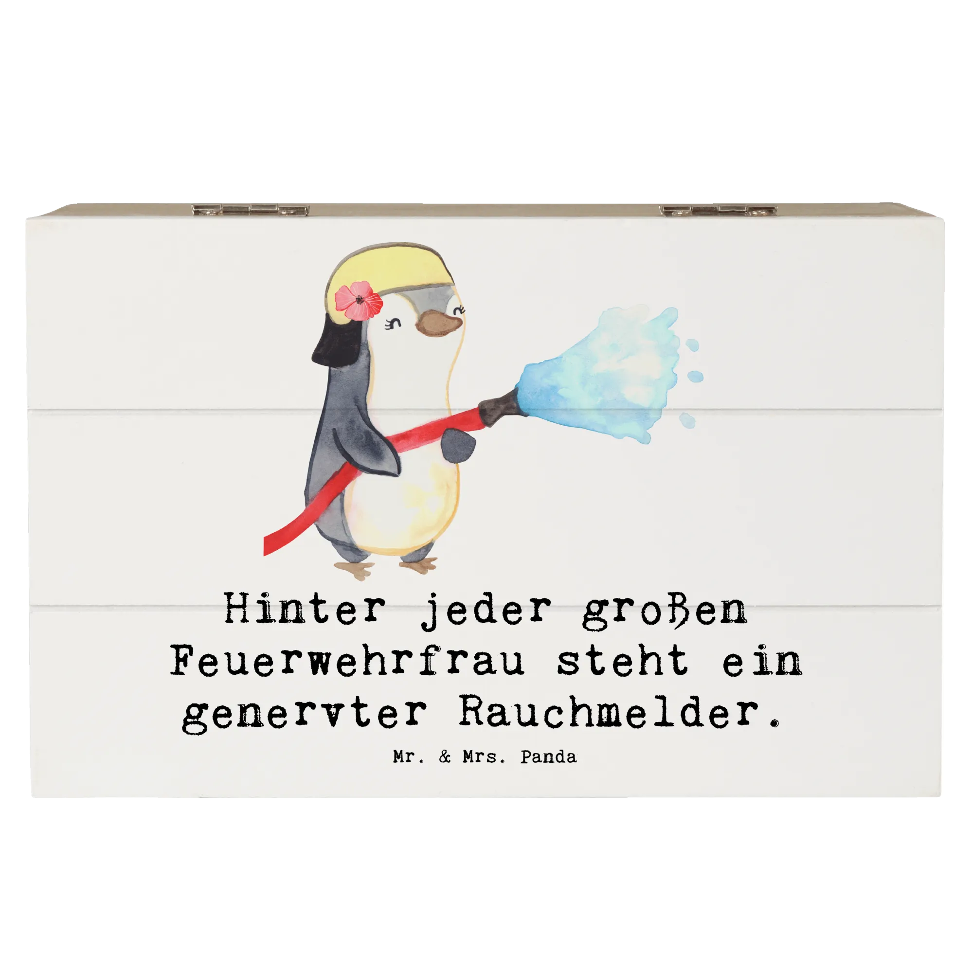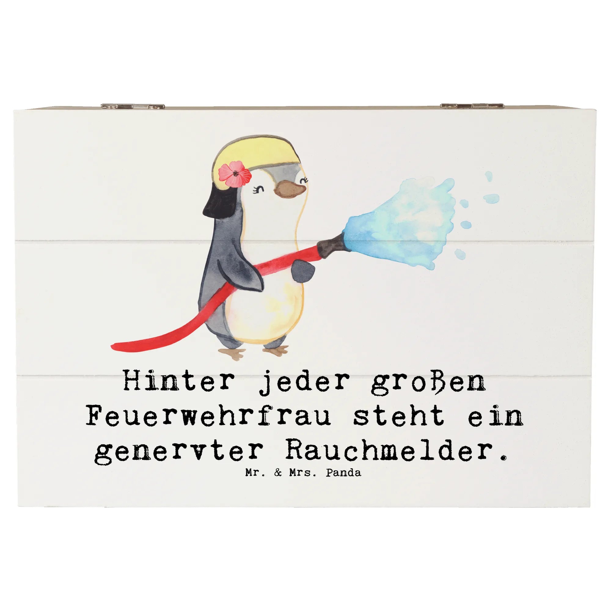 Durch die besondere Gestaltung mit dem Motiv der Feuerwehrfrau und dem passenden Spruch ist diese Kiste ein echter Hingucker und ein tolles Accessoire für den Arbeitsplatz oder das Zuhause. Perfekt, um eine persönliche Note zu verleihen und die Leidenschaft für den Beruf auszudrücken. Die Berufe-Kollektion von Mr. & Mrs. Panda ist eine liebevolle Sammlung, in der jedes Produkt mit viel Herz und Hingabe entwickelt wurde.