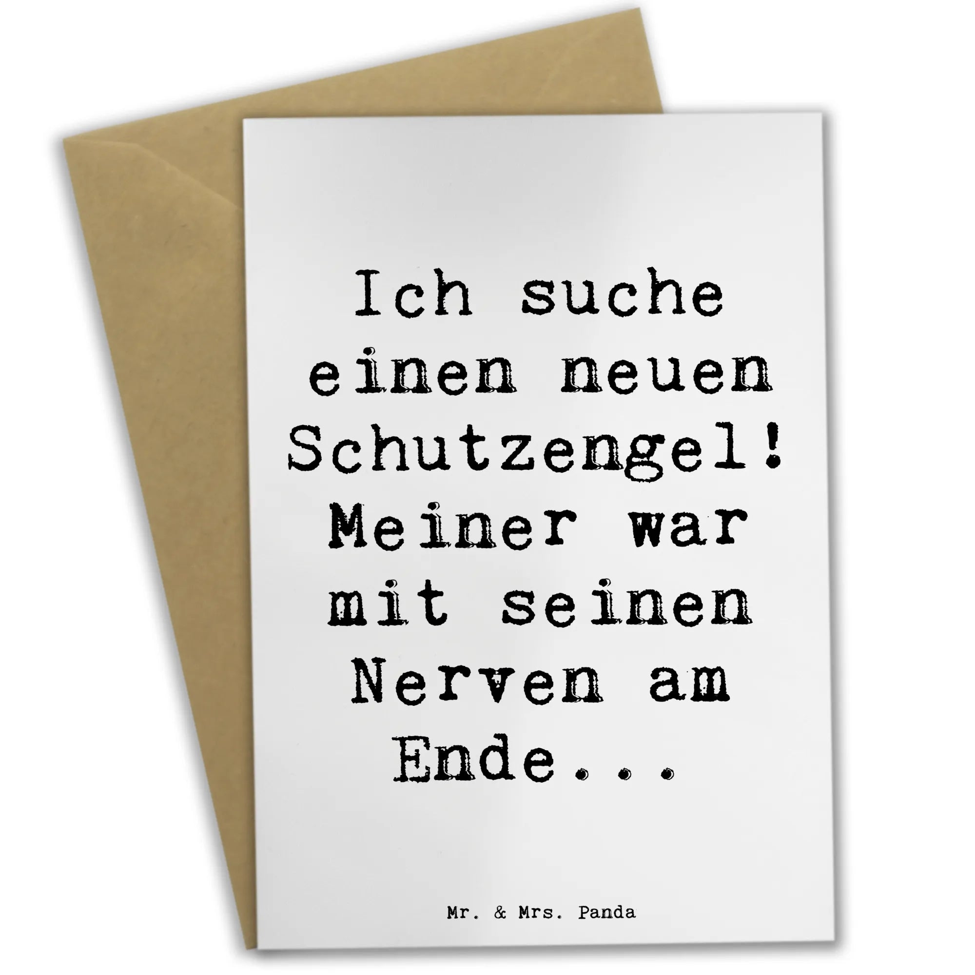 Die Grußkarte mit dem Motiv "Schutz" aus der Kollektion "Gefühle & Stimmungen" von Mr. & Mrs. Panda ist das perfekte Geschenk für viele Gelegenheiten! Ob zum Geburtstag, als Hochzeitskarte oder für einen feierlichen Anlass - diese einmalige Karte begeistert durch ihre liebevoll gestaltete Vorderseite und den witzigen Spruch: "Ich suche einen neuen Schutzengel! Meiner war mit seinen Nerven am Ende..."