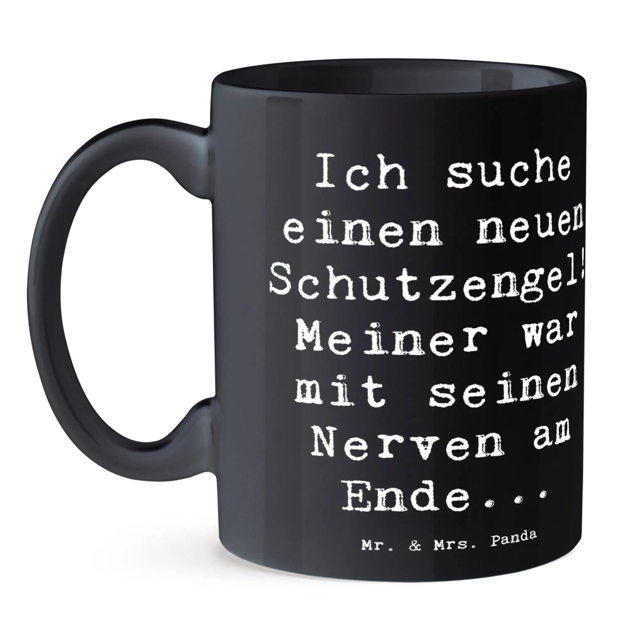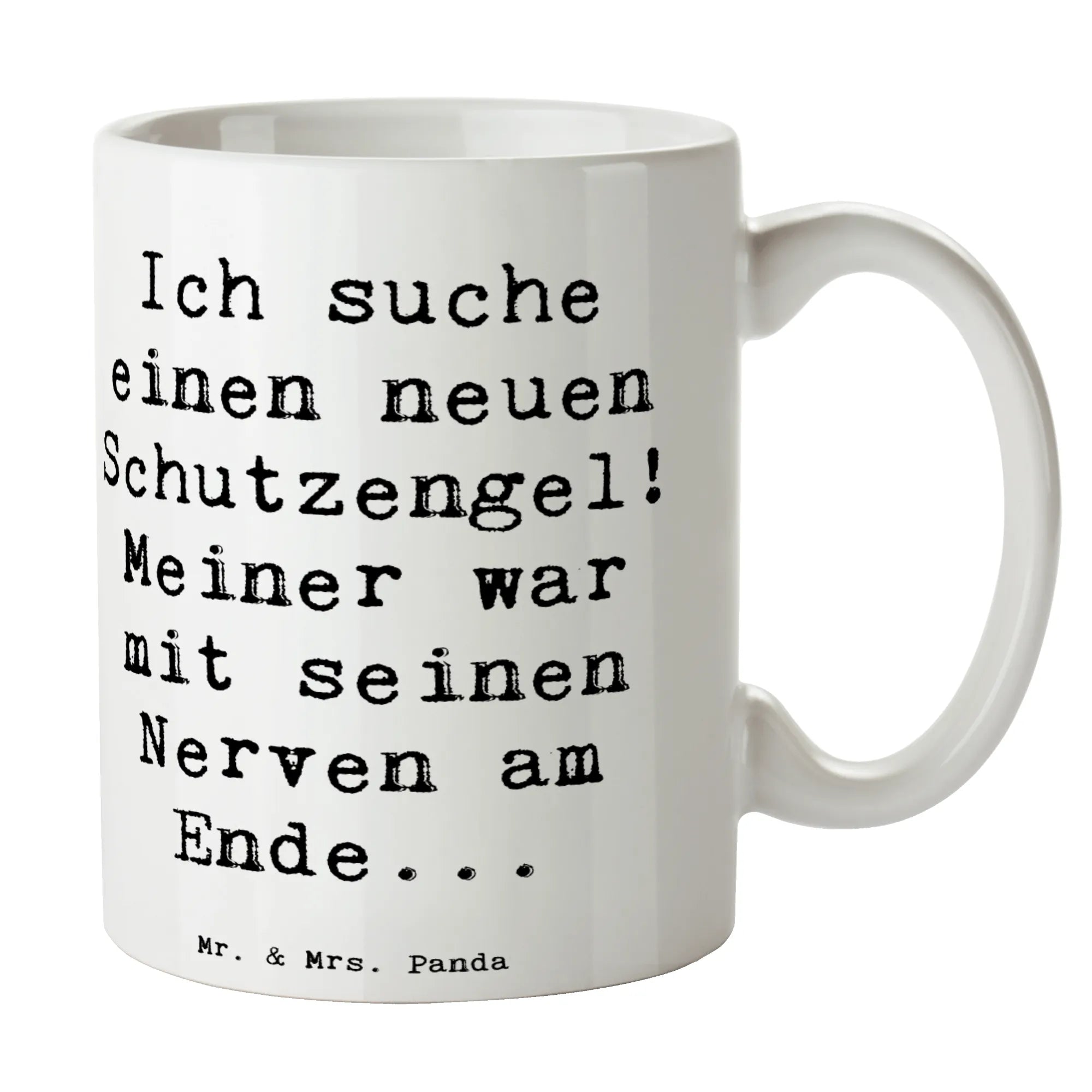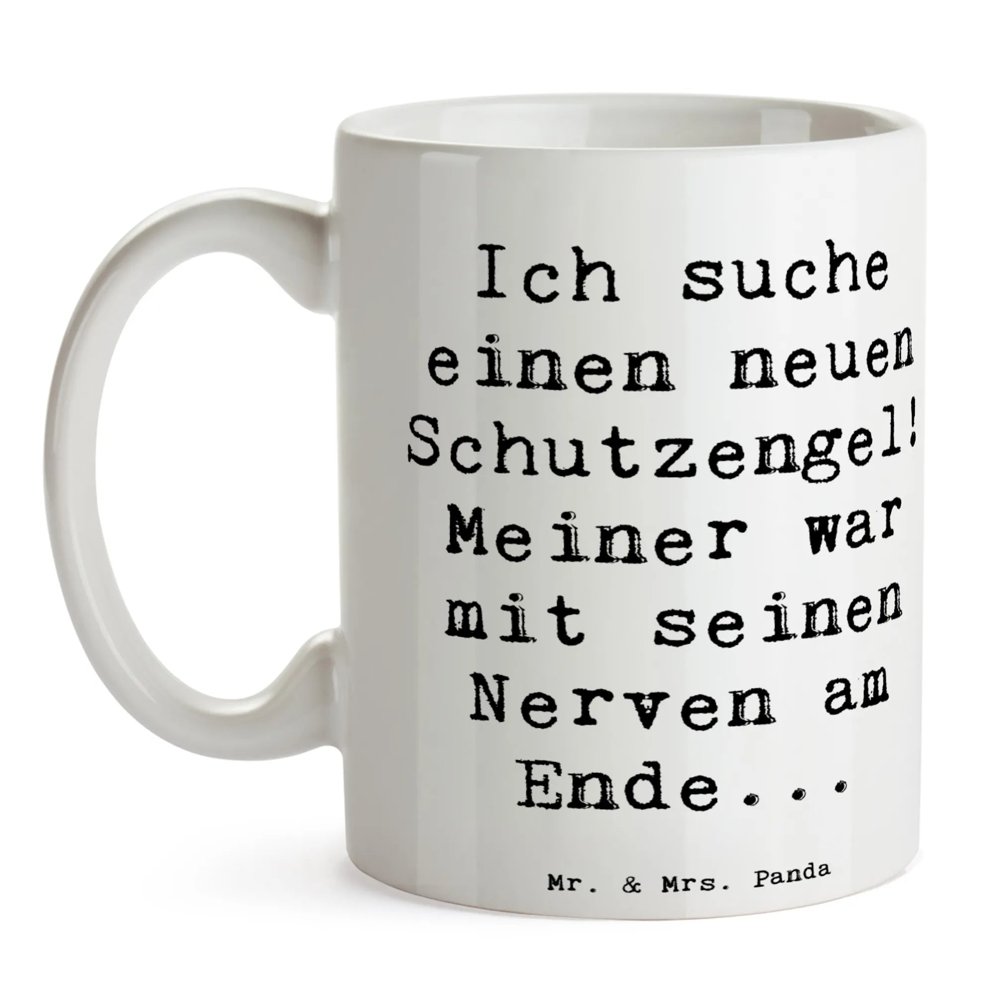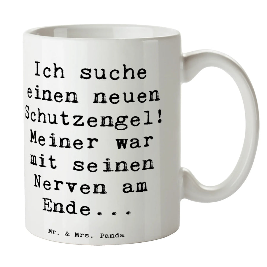 Suchst Du nach einer Tasse, die mehr als nur Kaffee hält? Unsere Mr. & Mrs. Panda Kaffeetasse aus der Kollektion Gefühle & Stimmungen kombiniert Humor mit Herz. Der freche Spruch „Ich suche einen neuen Schutzengel! Meiner war mit seinen Nerven am Ende...“ sorgt für ein Schmunzeln bei jedem Schluck. Die Meeresbrise-Farbe verleiht der Tasse Ruhe und einen modernen Look.
