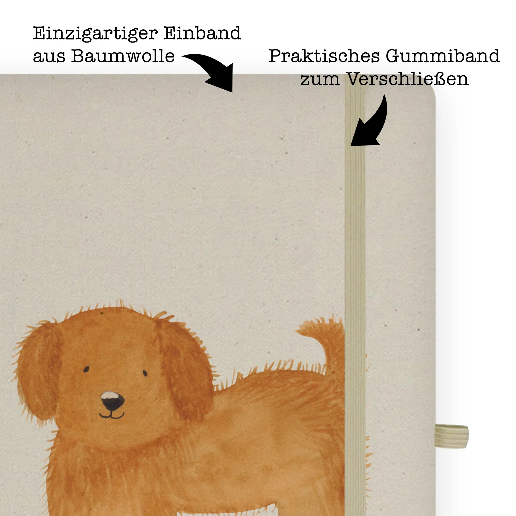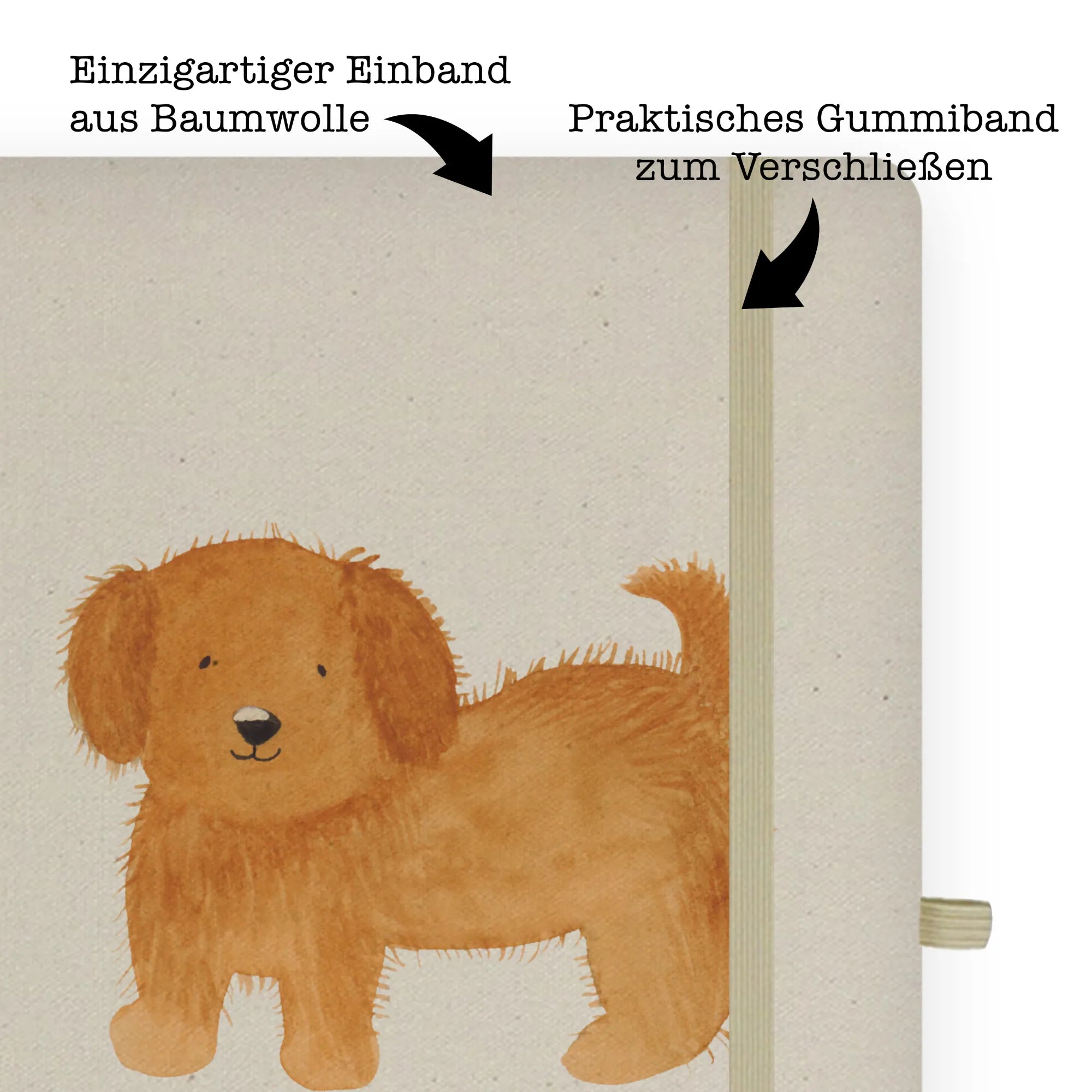 Bawełniany notatnik DIN A4 pies puszysty - DIN A5 Baumwoll Notizbuch - z napisem